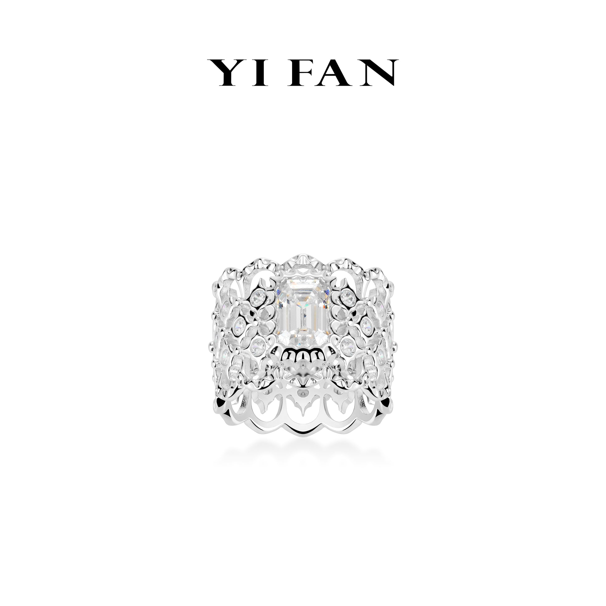 Luxury Emerald-cut Lovers "Hollowed Honeycomb" wide Lace Ring.