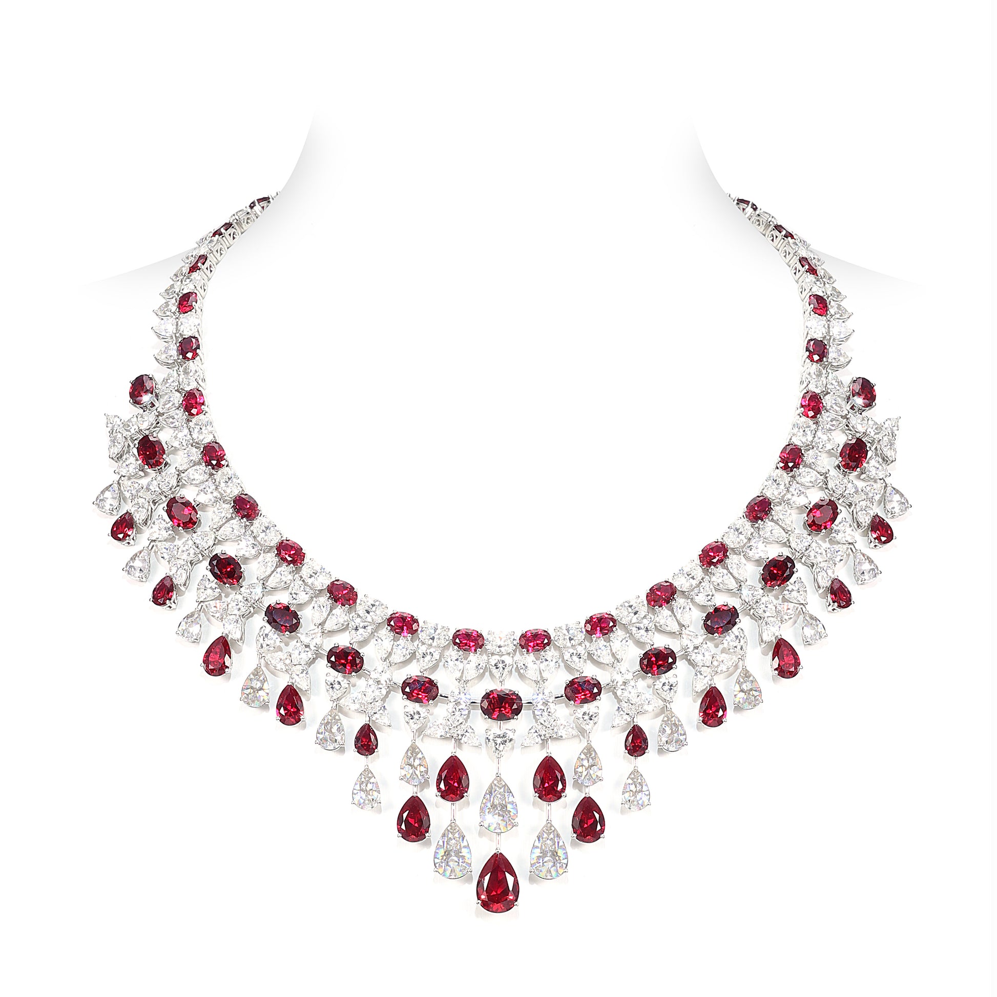 High Jewelry collection: Luxury “Red Water Droplets” detailed Necklace for Red Carpet/Banquet