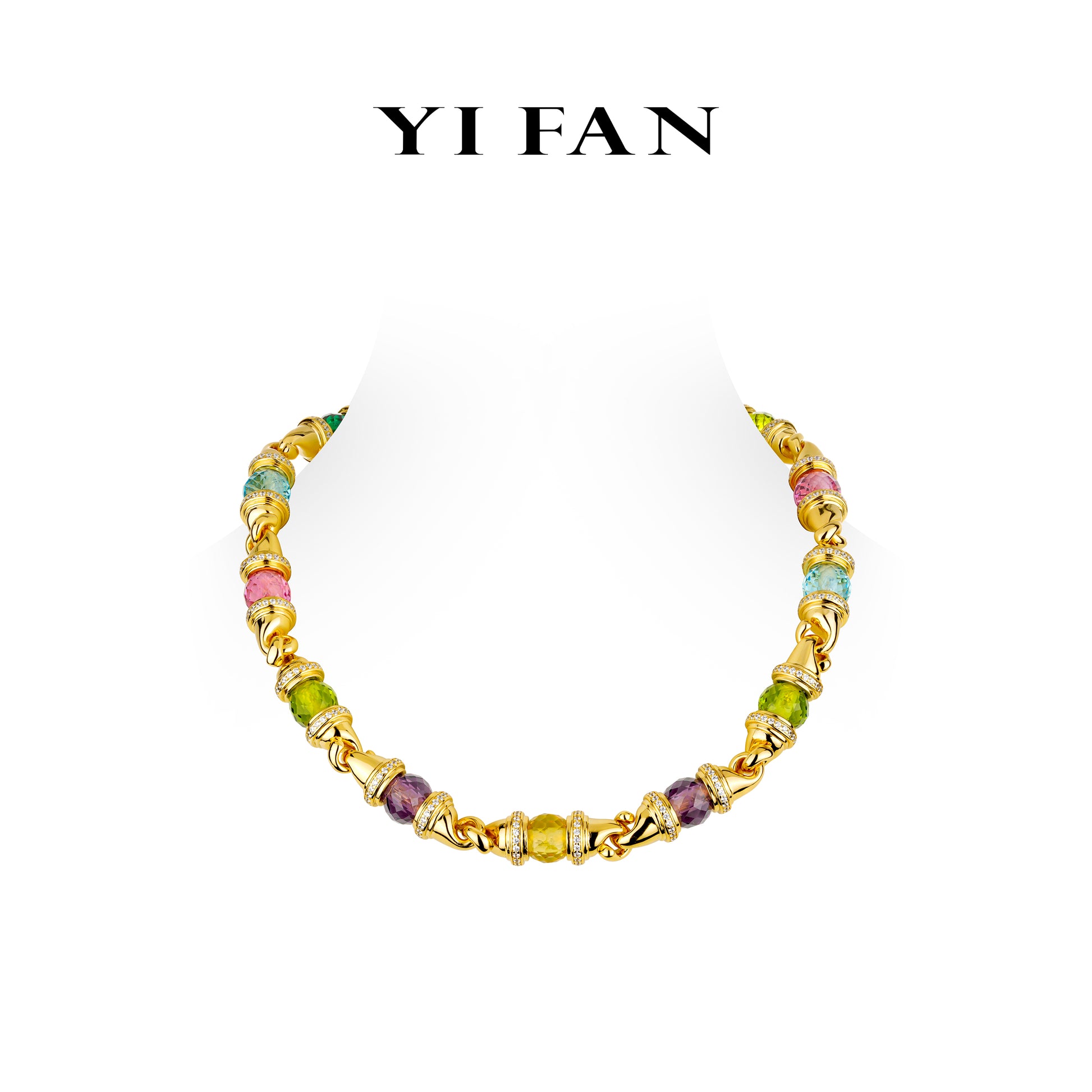High Jewelry collection: Luxury Vintage style "Rainbow Dessert" Necklace