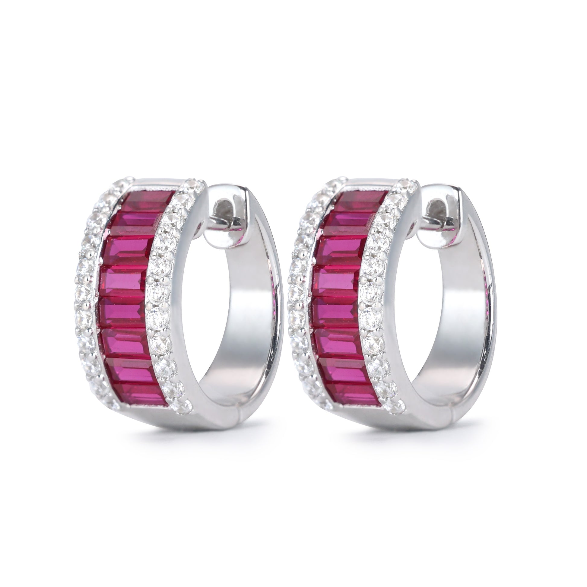 Micro-setting Ruby color invisible setting Lab created stones mordern ear loops, sterling silver