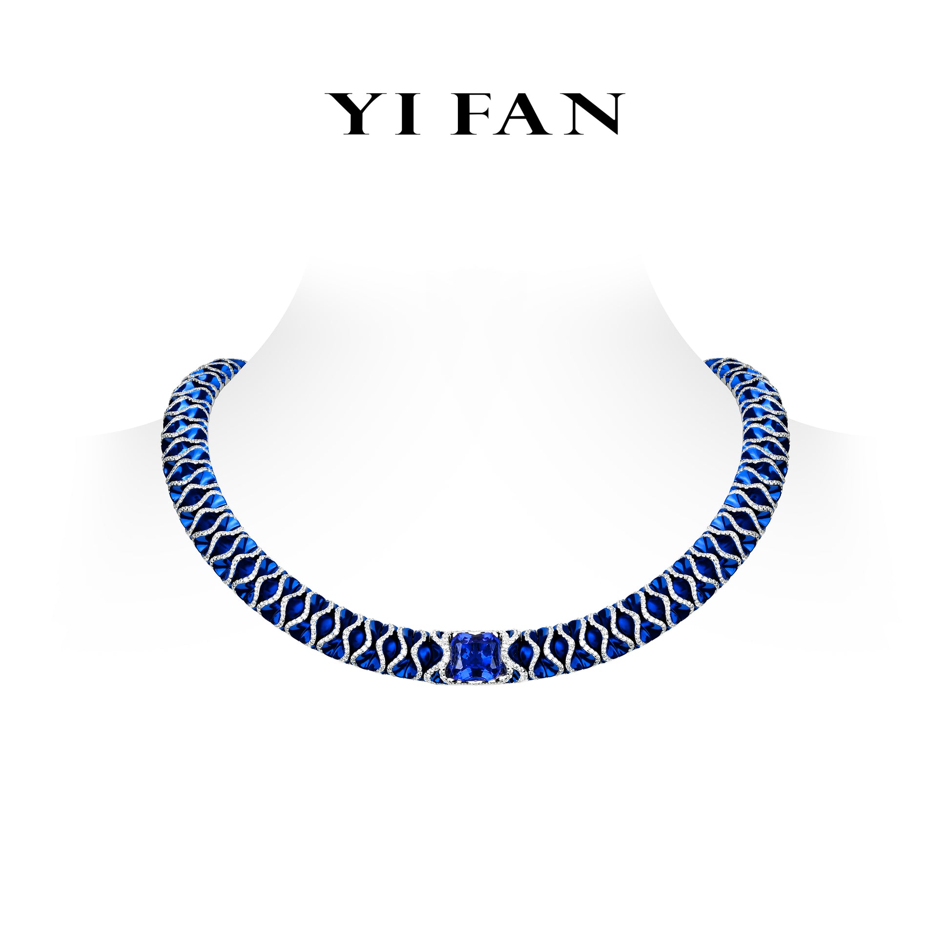 Pre-order Lab Grown High Jewelry Collection: Luxury 3D "Enchanted Azure Blue Wave" detailed Collar Necklace