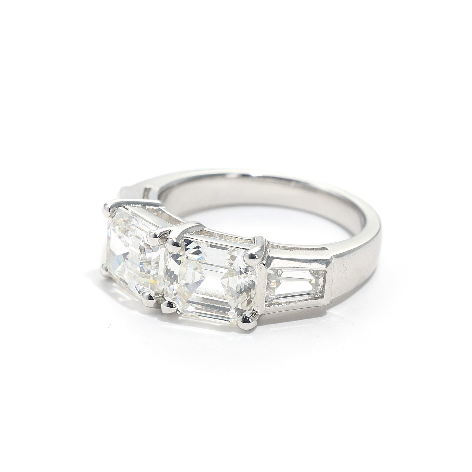 Special offer Clear diamond color Lab created stones Emerald cut 4 stones ring, sterling silver