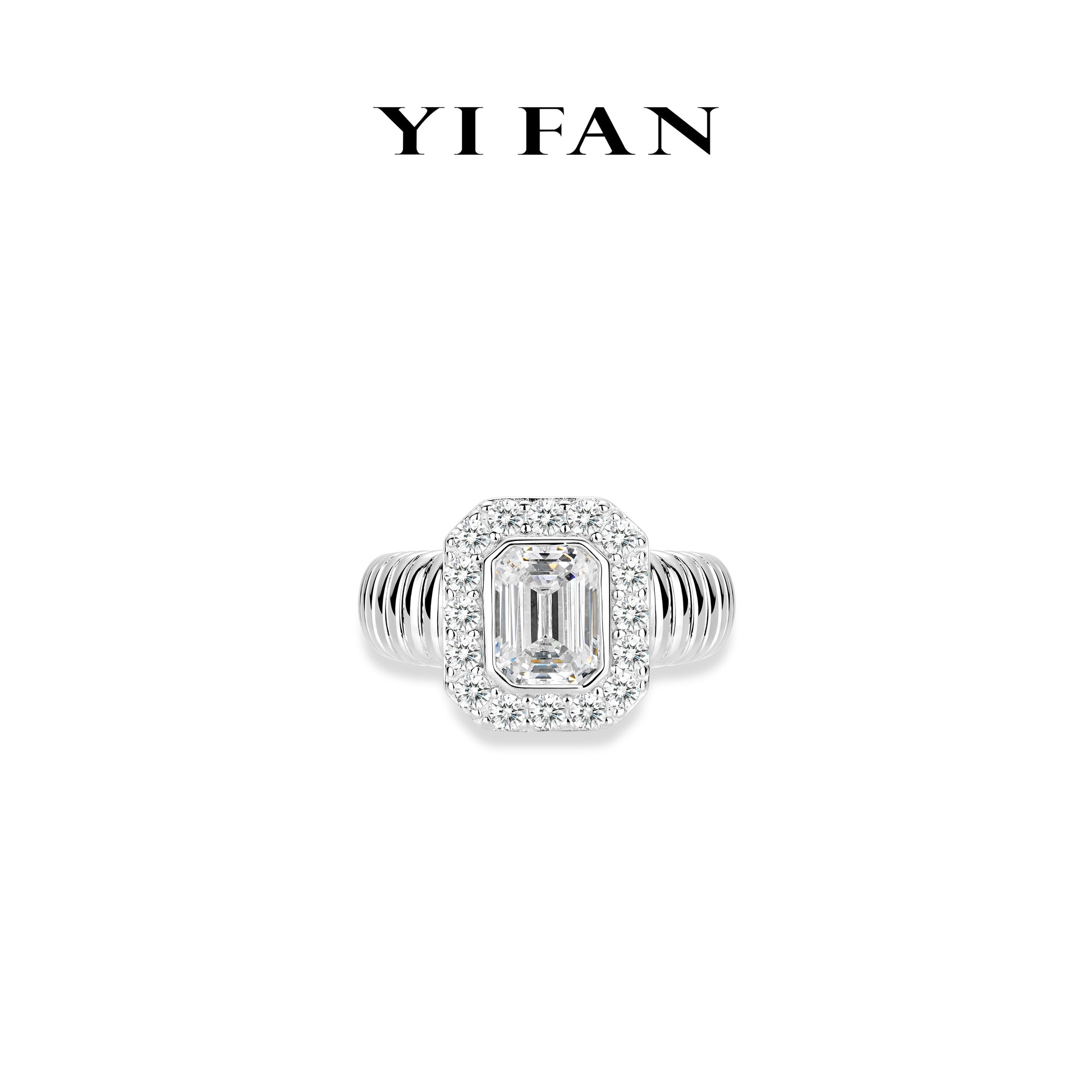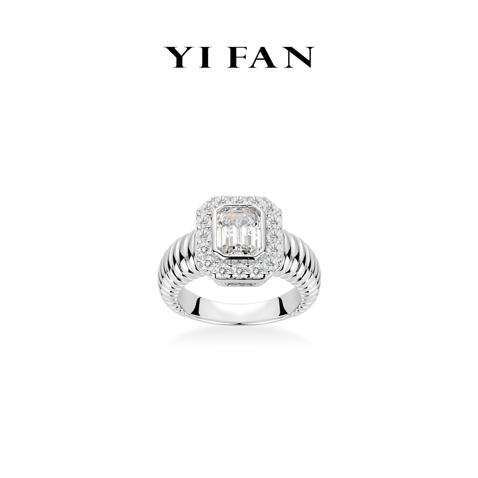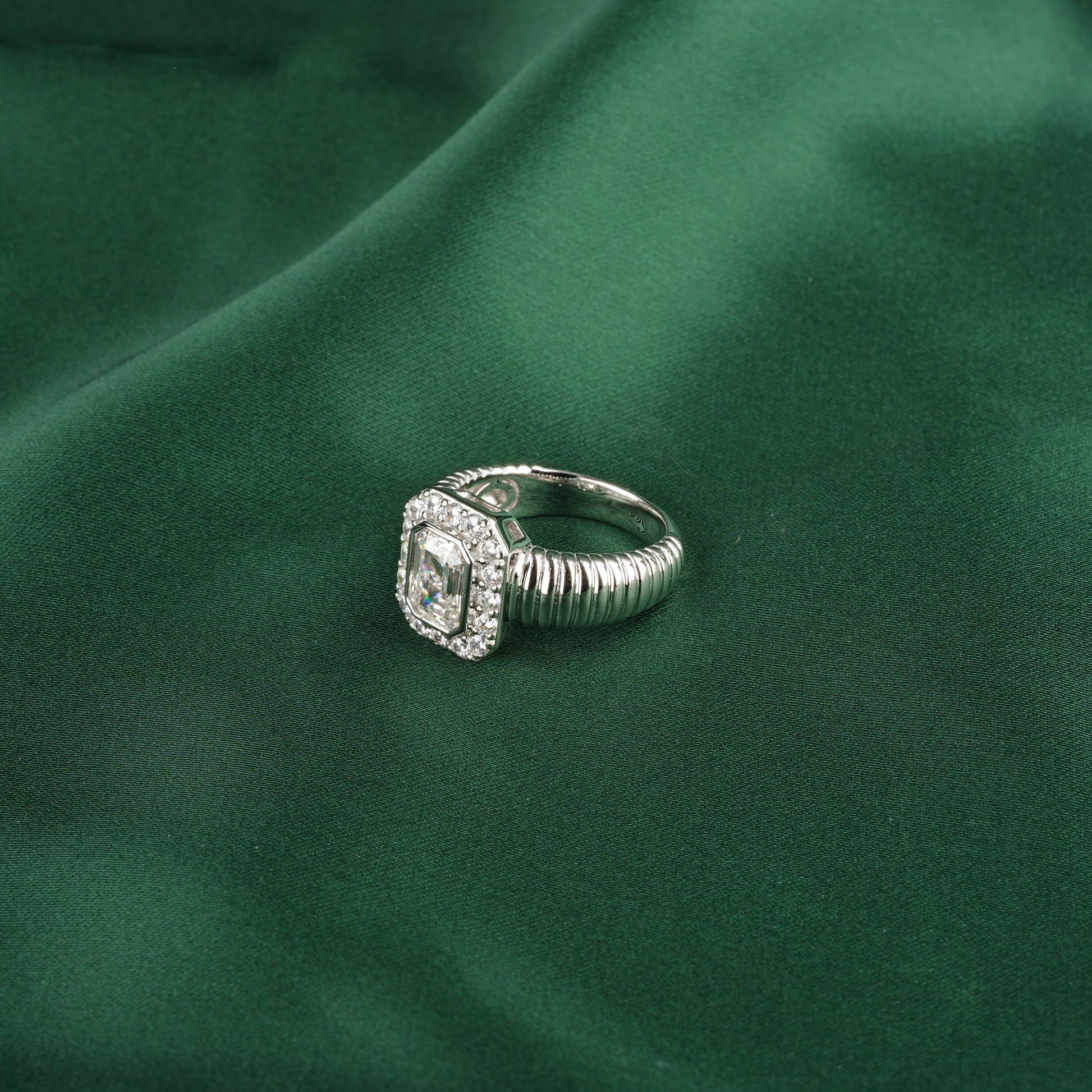 Wedding collection: Emerald-cut "Modern Rock" detailed wide band Ring (Unisex)