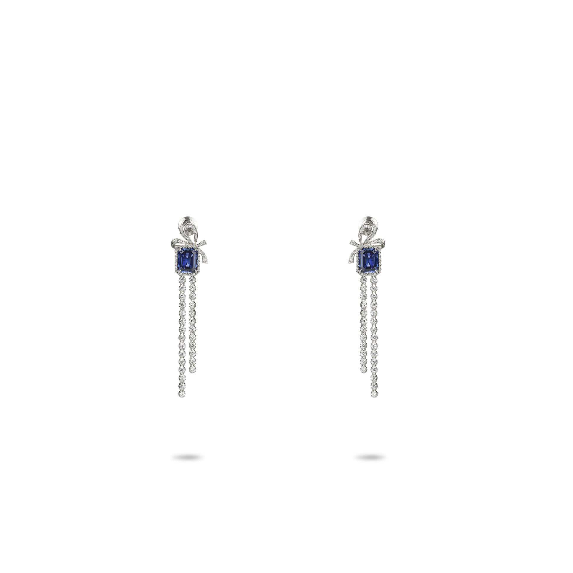 Christmas collection: Modern Rectangular Blue Bow Tassel Earrings