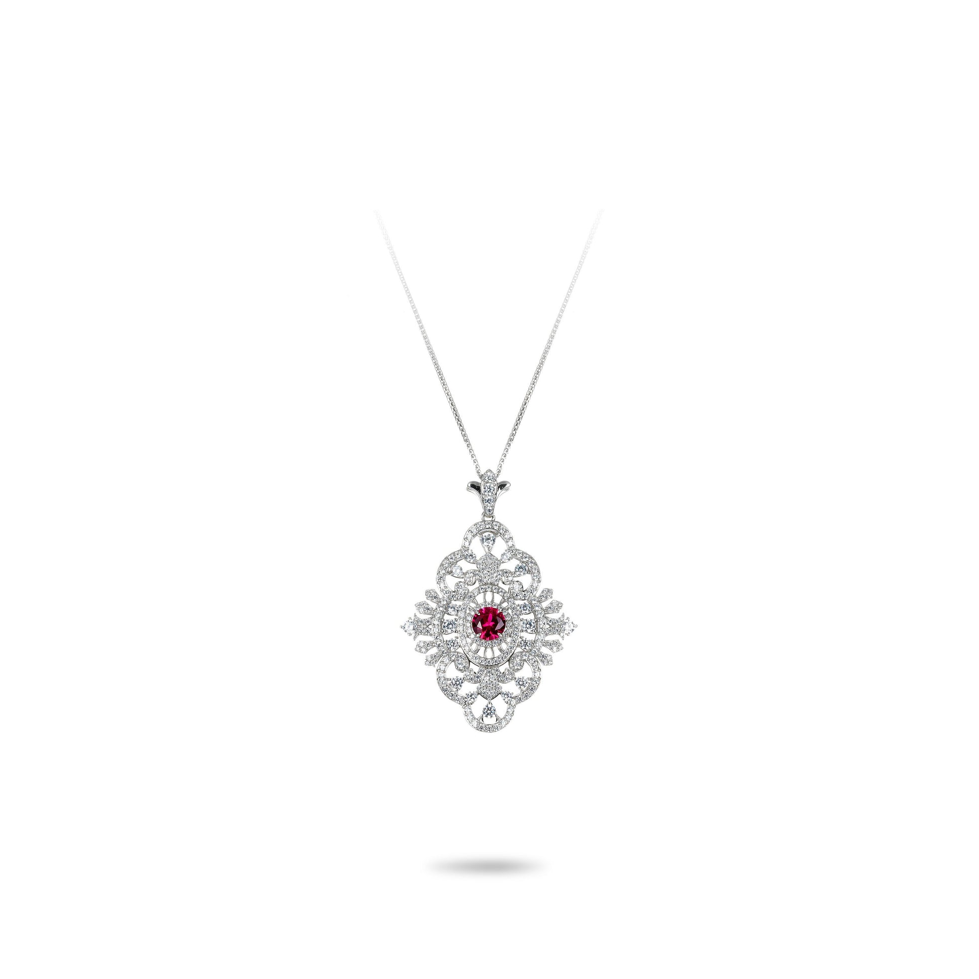 Micro-setting Clear and Ruby color Lab created stones Red Dot Lace Deluxe Inlay Pendant, sterling silver.