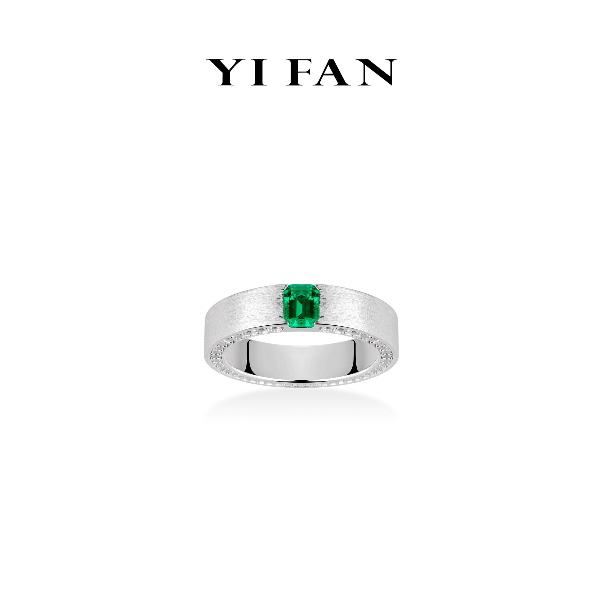 Lab Grown Emerald collection: Modern "Emerald-cut Ice Cube" detailed wide band Ring (Unisex)