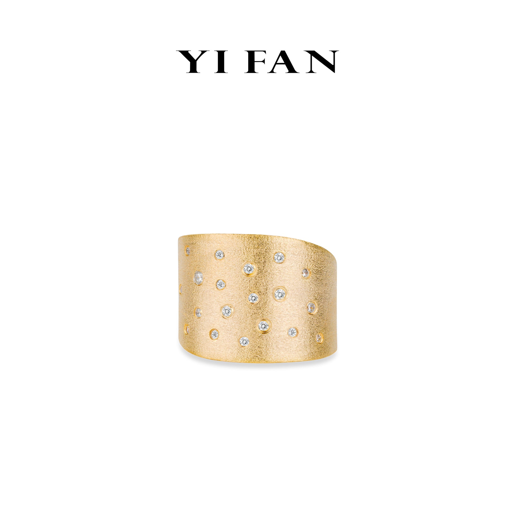 "Artistic brushed Stars in Golden Galaxy" Modern Wide band Ring.