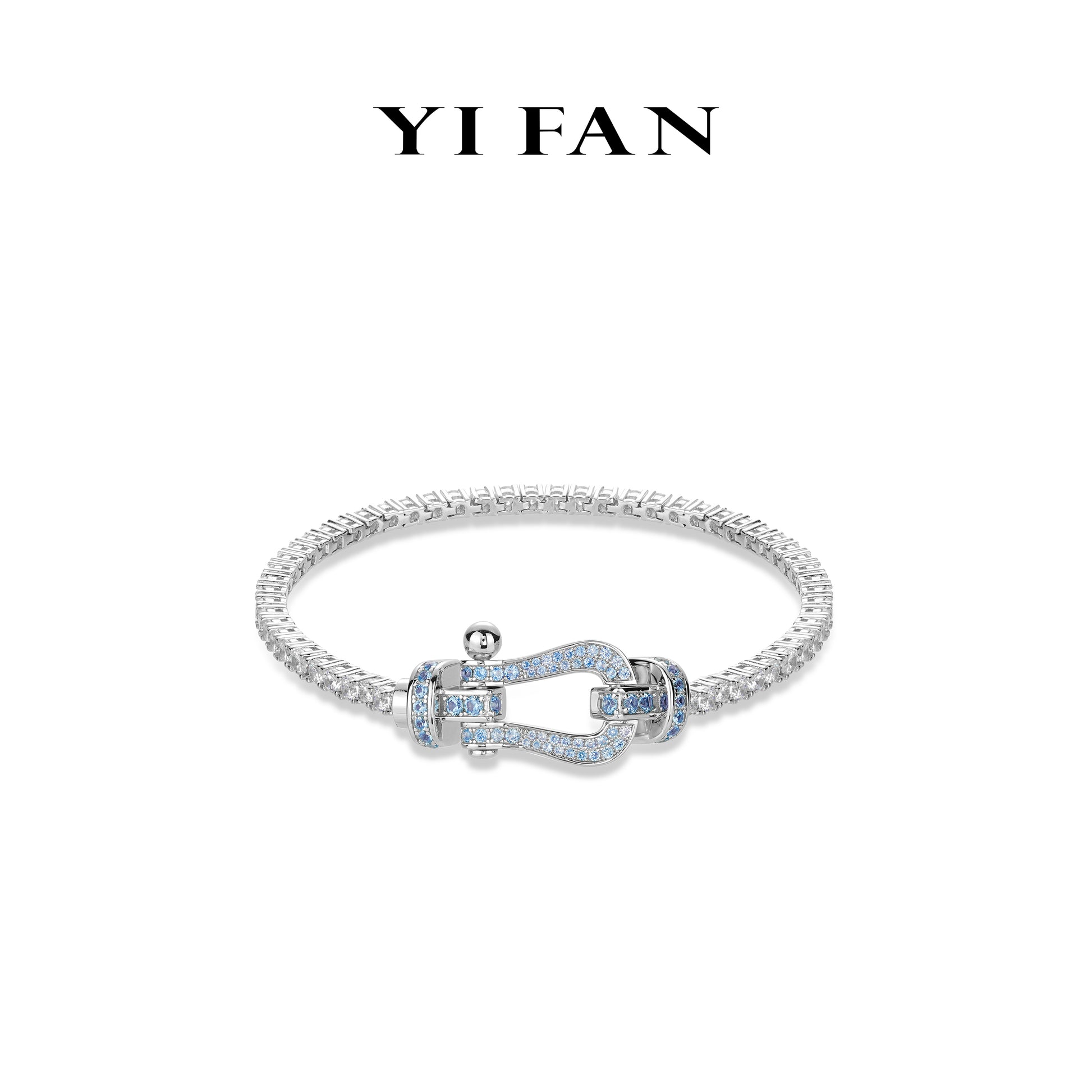 Minimalist collection: "Blue & White Horseshoe" Modern Tennis Bracelet (Unisex)
