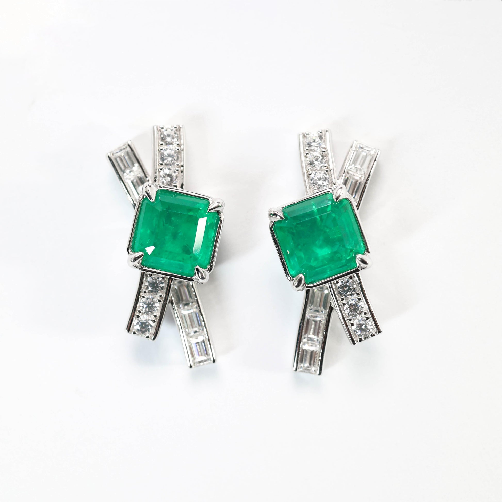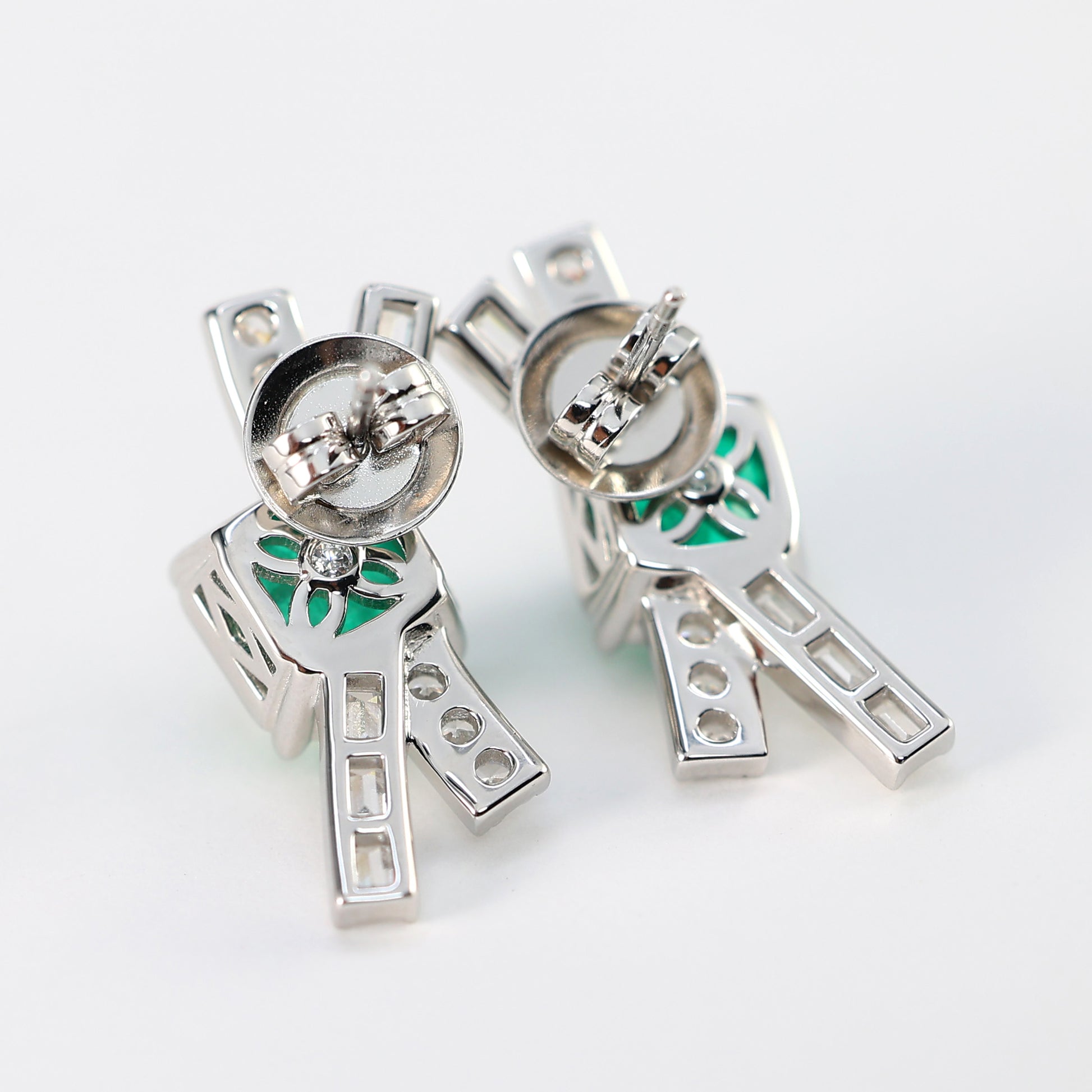 Micro-setting emerald color Lab created stones bowknot earrings, sterling silver.