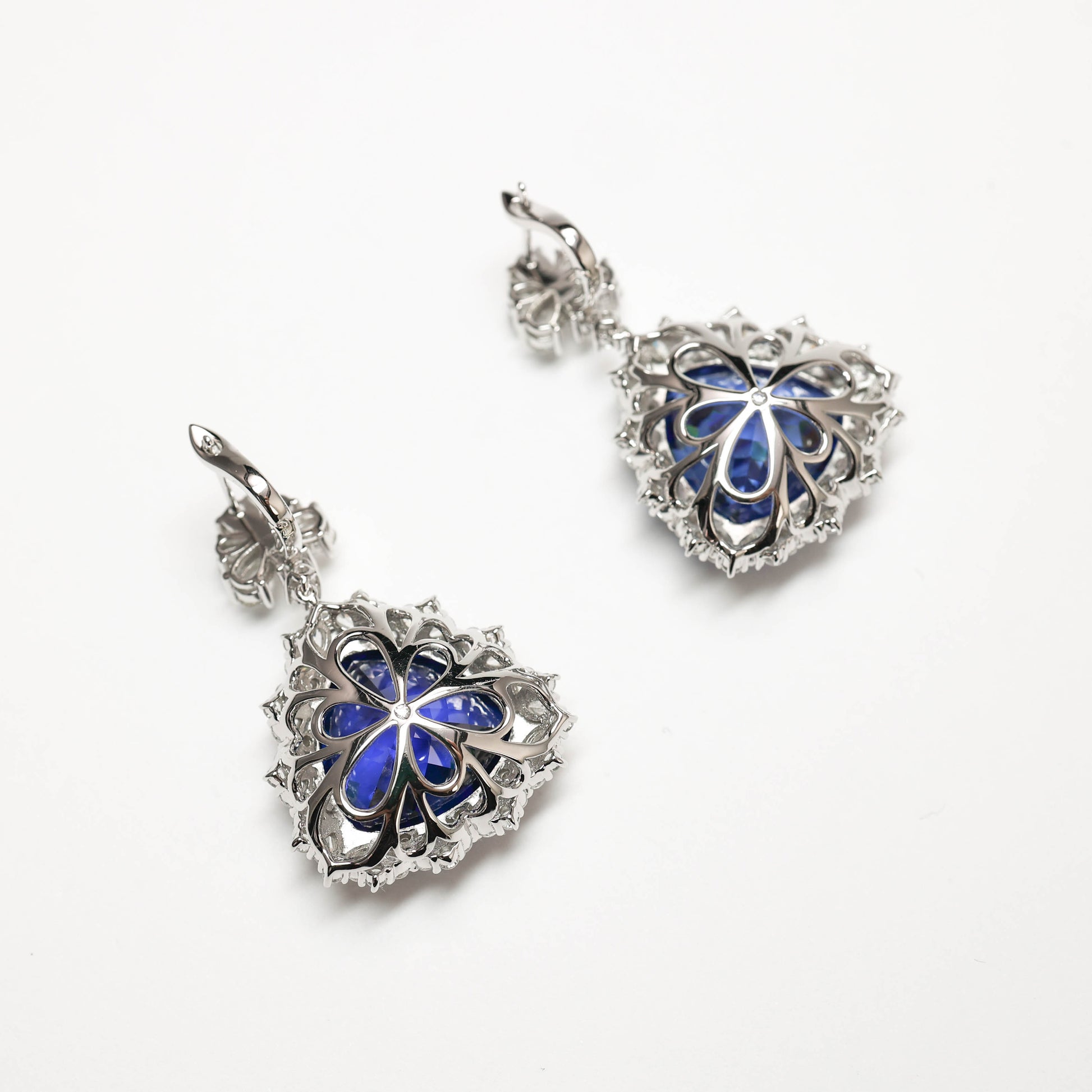 Micro-setting lab created stones Sapphire color Hearts of Oceans earrings, sterling silver.