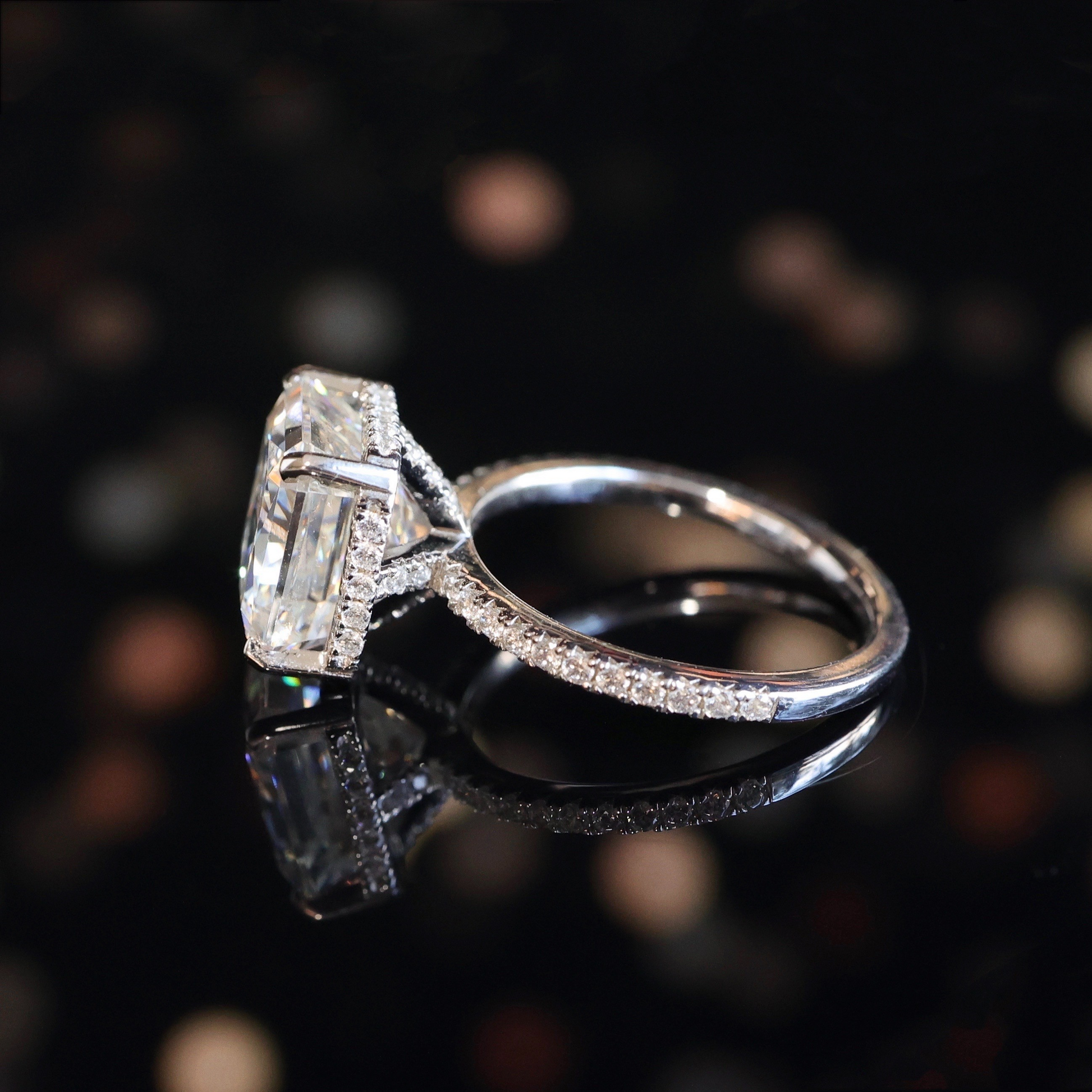 Micro-setting Star cutting Lab created stones Square shape ring sterling silver. (4.5 carat) US size: 6-8-10