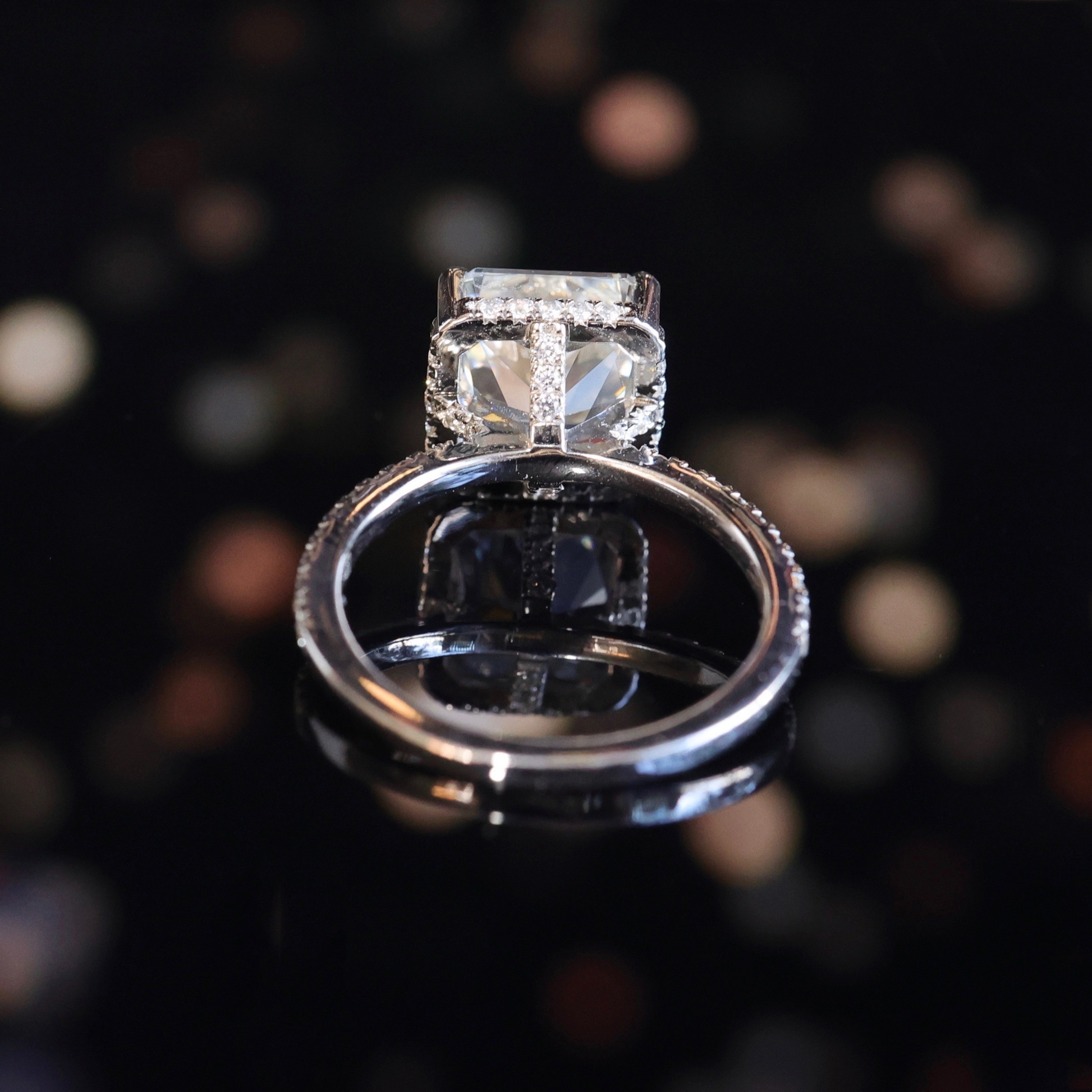 Micro-setting Star cutting Lab created stones Square shape ring sterling silver. (4.5 carat)