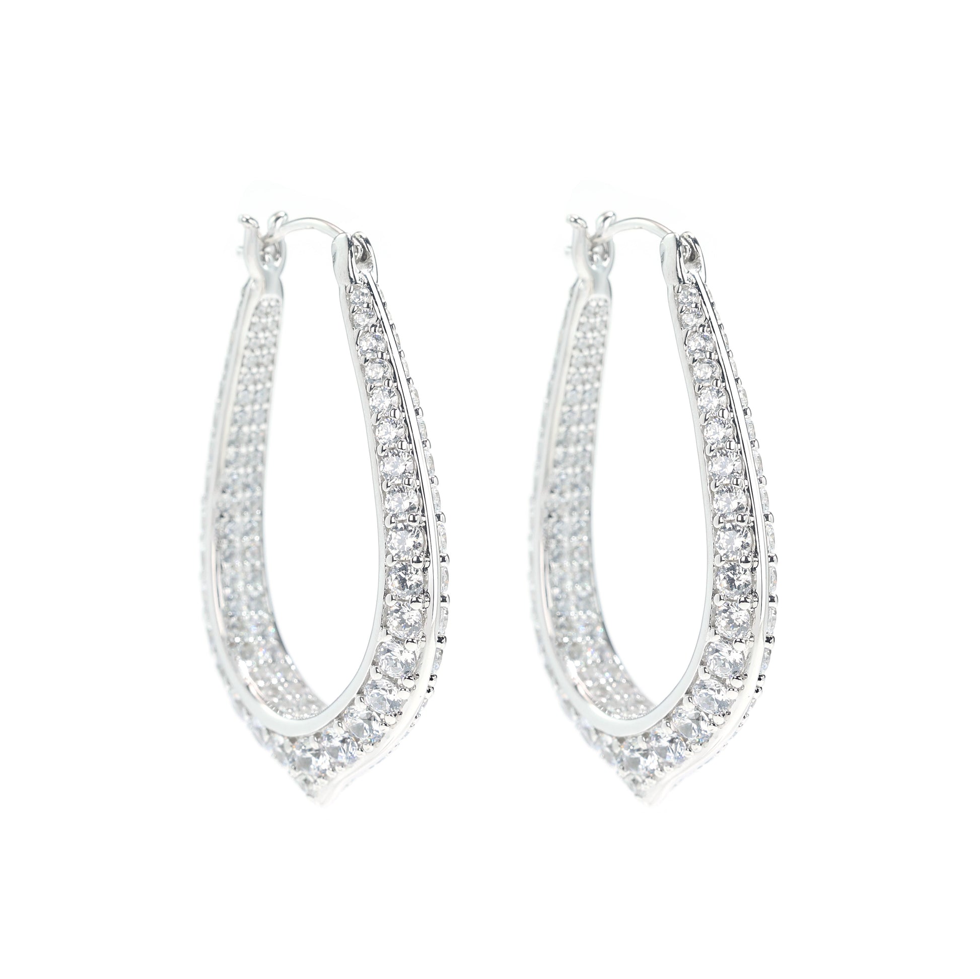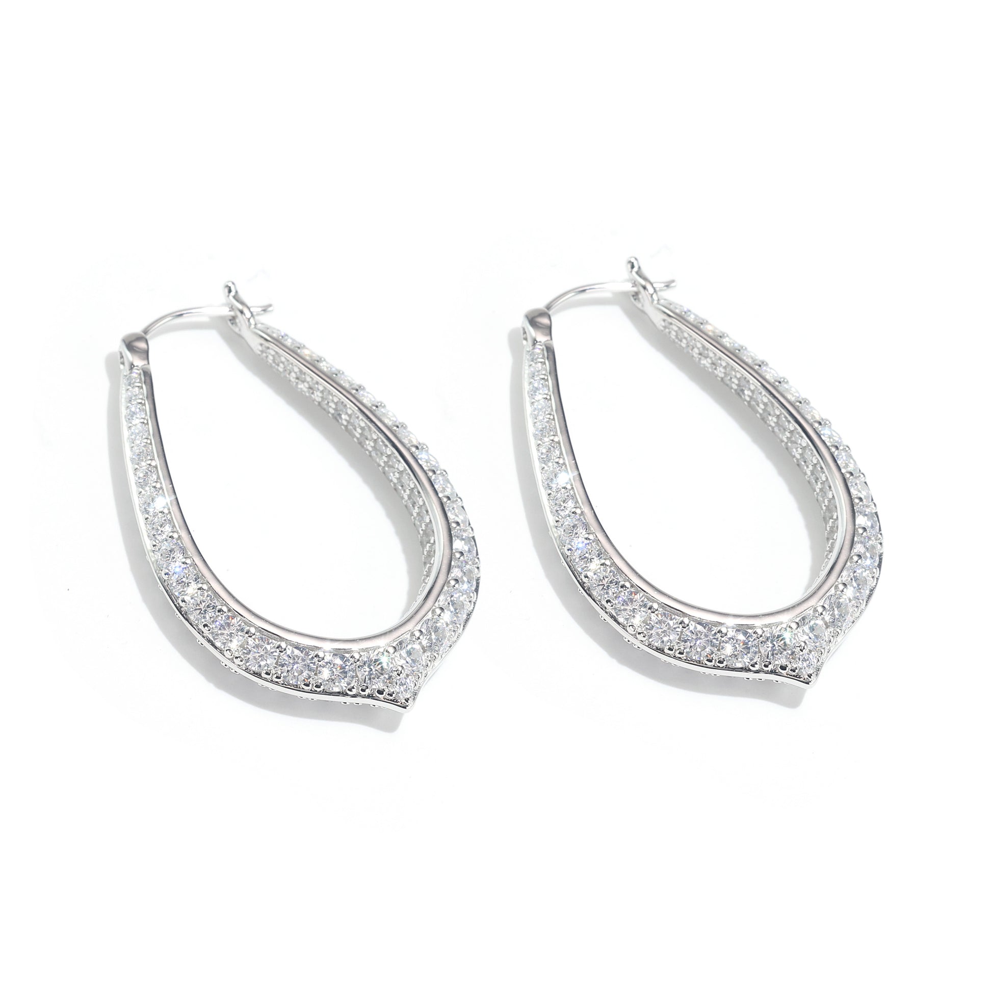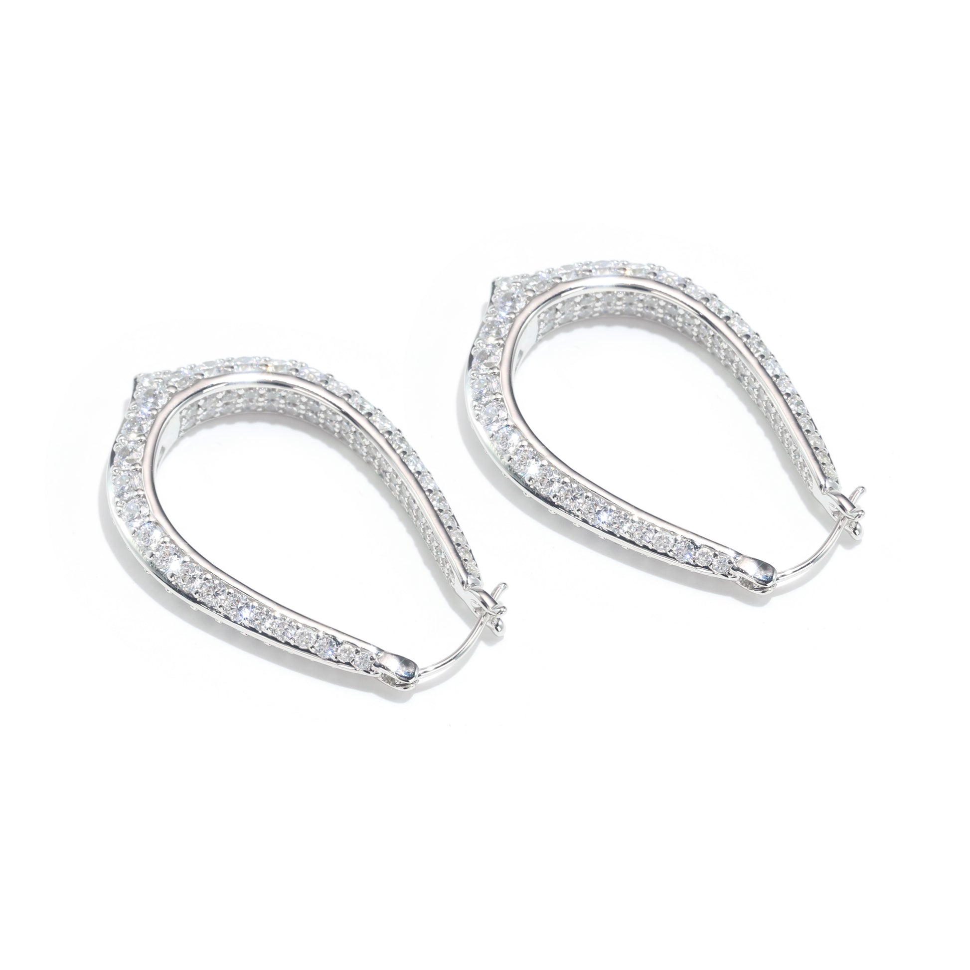 Limited edition Micro-setting Clear diamond color Lab created stones fully studded ear loops, sterling silver