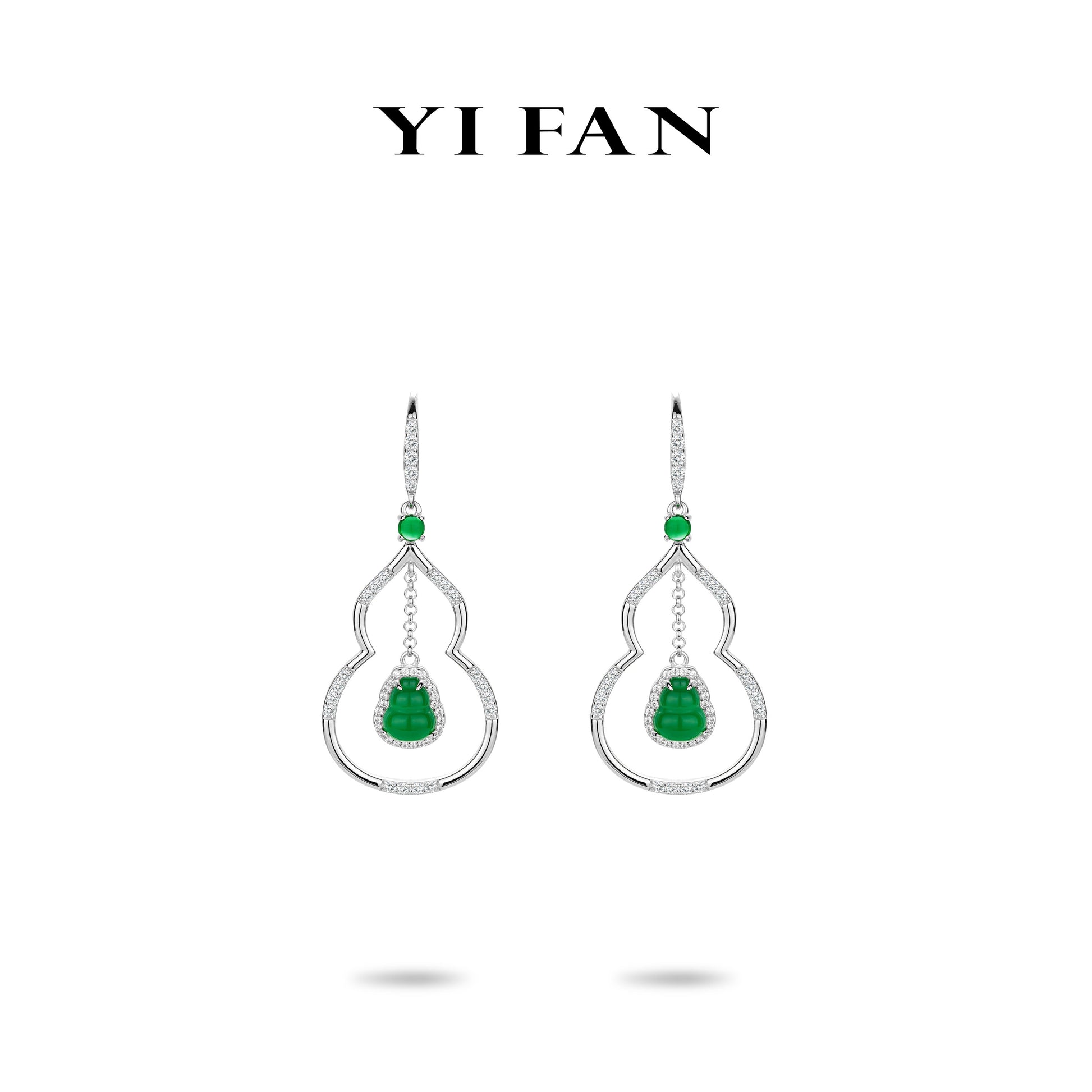 Limited edition: Modern Green Jade “Hollowed Hulu Tassel” dangle earrings