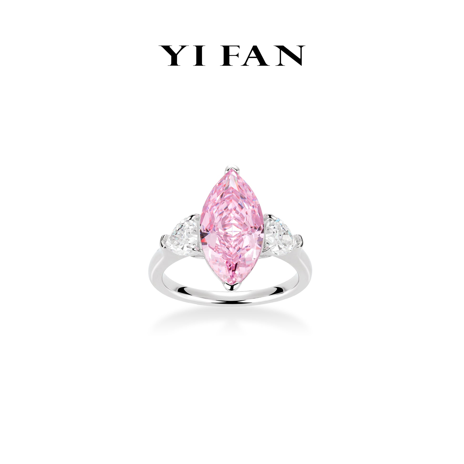 Limited Pink Diamond color collection: Modern "Sakura Pink Marquise Lovers" detailed 3-stones Ring