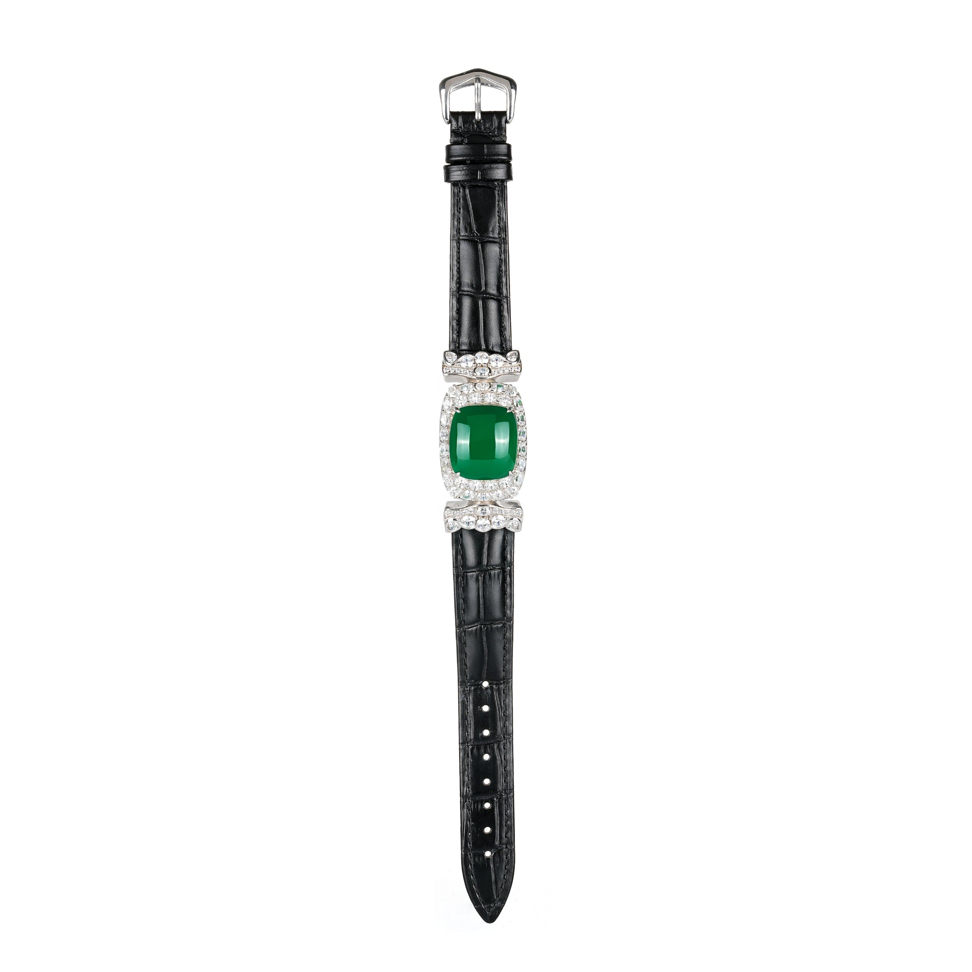 The harmonious artistic craftsmanship in our stunning Green chrysoprase detailed leather bracelet, meticulously handcrafted from Chinese Green jadeite/chalcedony and Eco-friendly artificial diamonds, sterling silver.