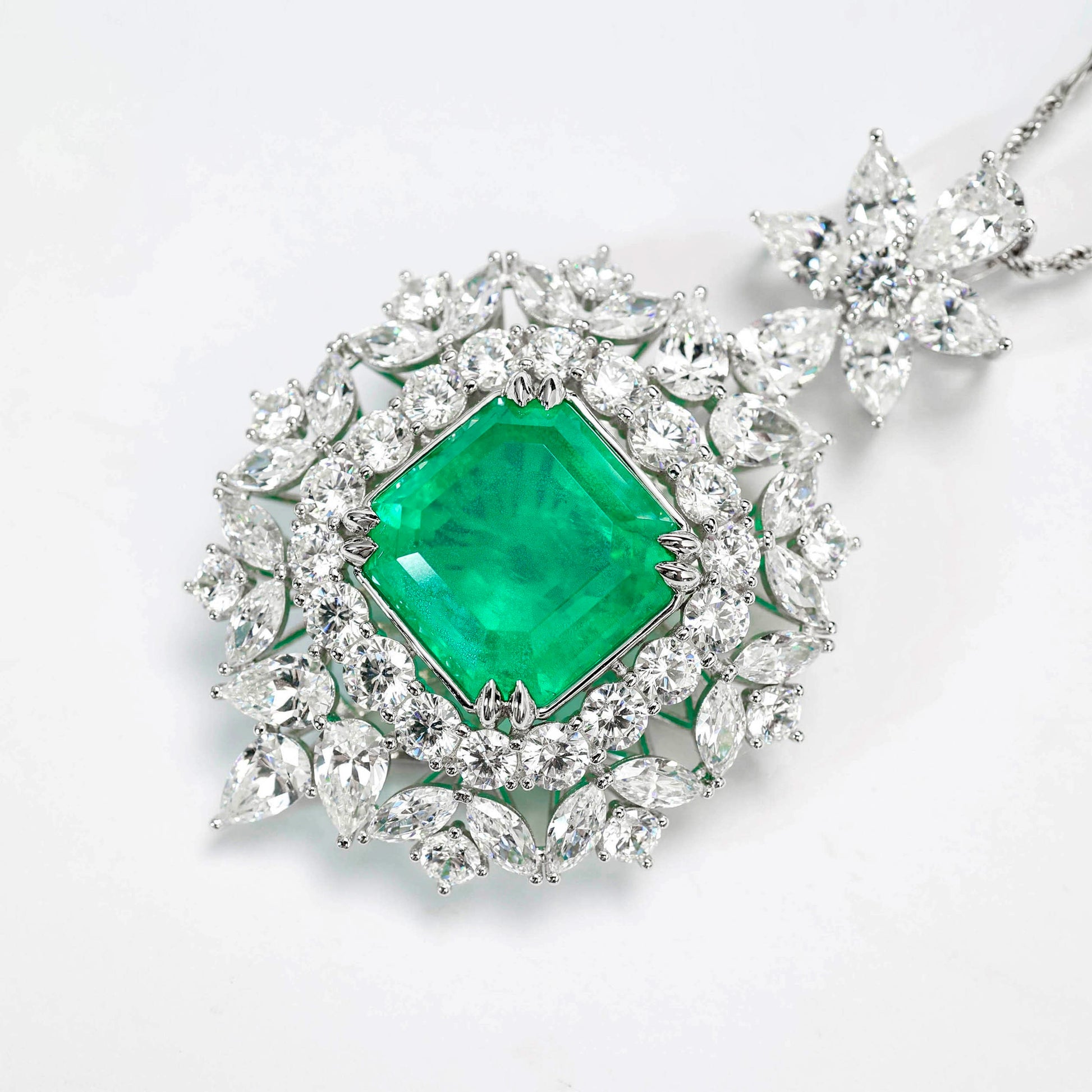 Special offer Micro-setting Emerald color Square Lab created stones detailed pendant, sterling silver
