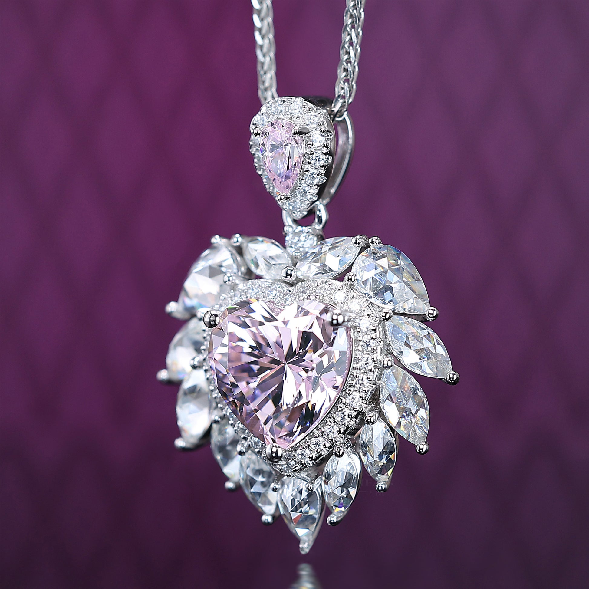 Special offer Micro-setting Pink diamond color Lab created stones fore ever heart necklace, sterling silver.