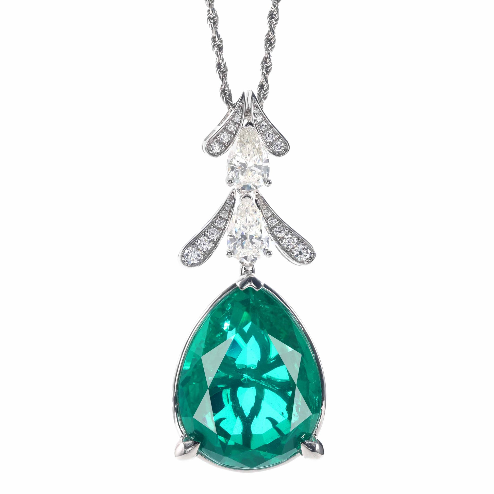 Synthetic Emerald collection: Luxury "Forest Rain Drop" detailed Pendant Necklace