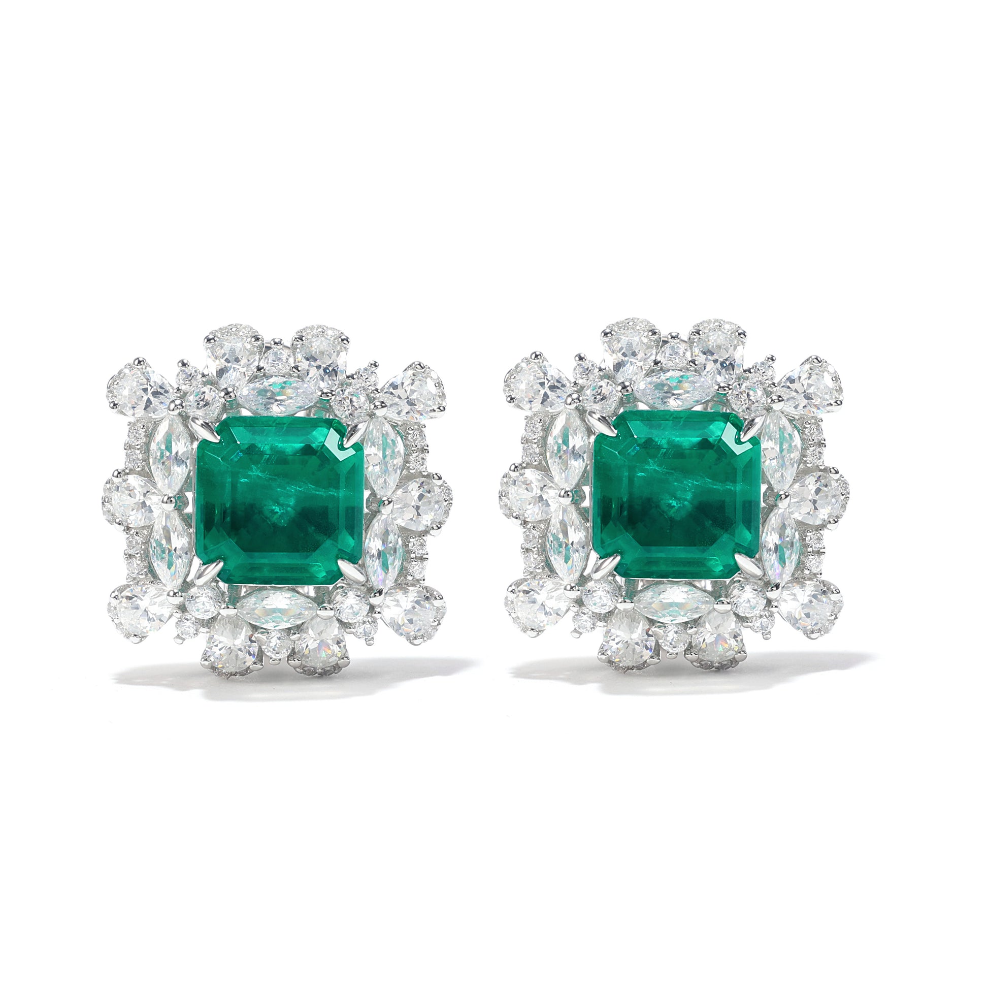 Synthetic Emerald collection: Mixed cuts Lace Square Earrings