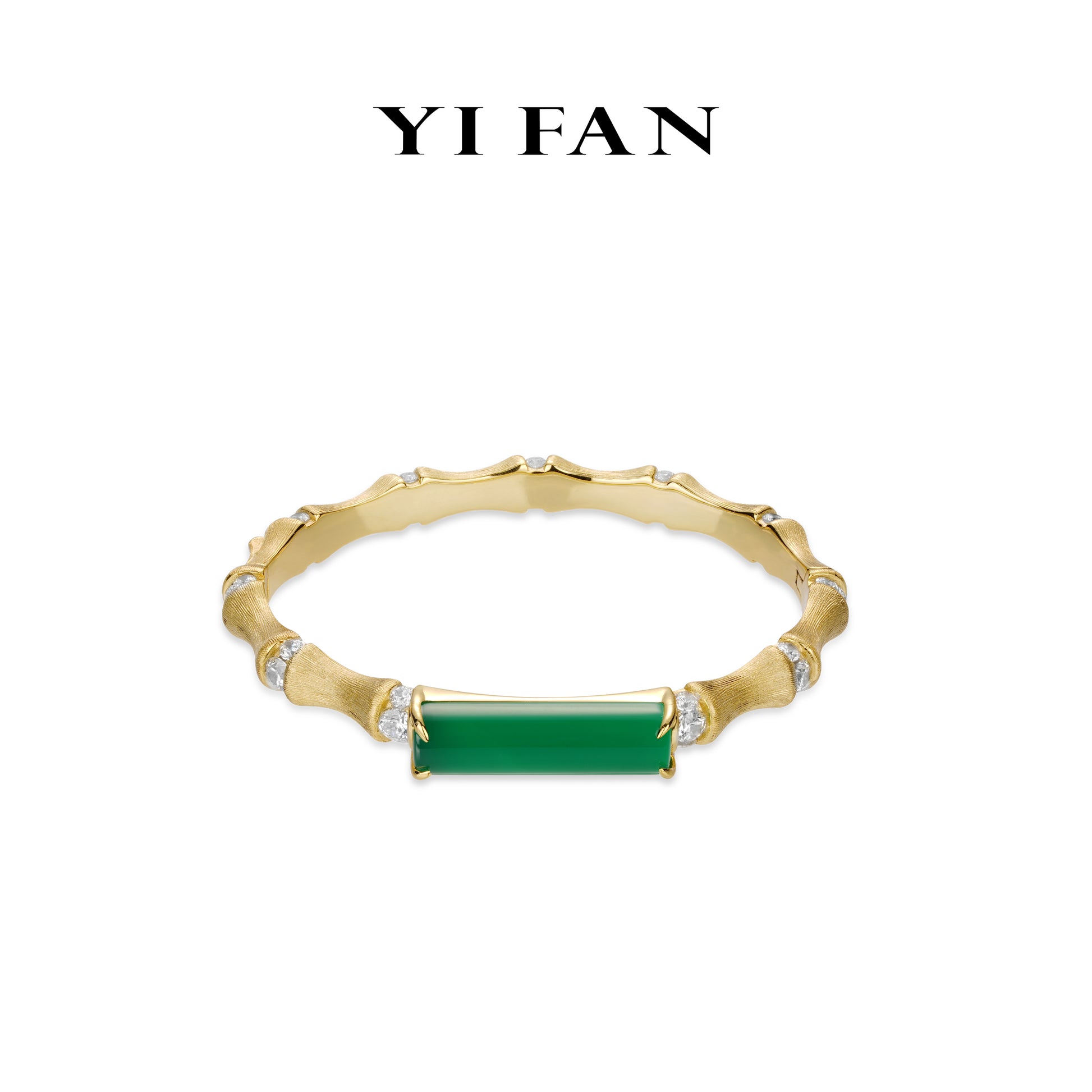 Golden time collection: Modern Green jade “No worries Pillar with Bamboo Section” detailed eternity Bracelet/Bangle