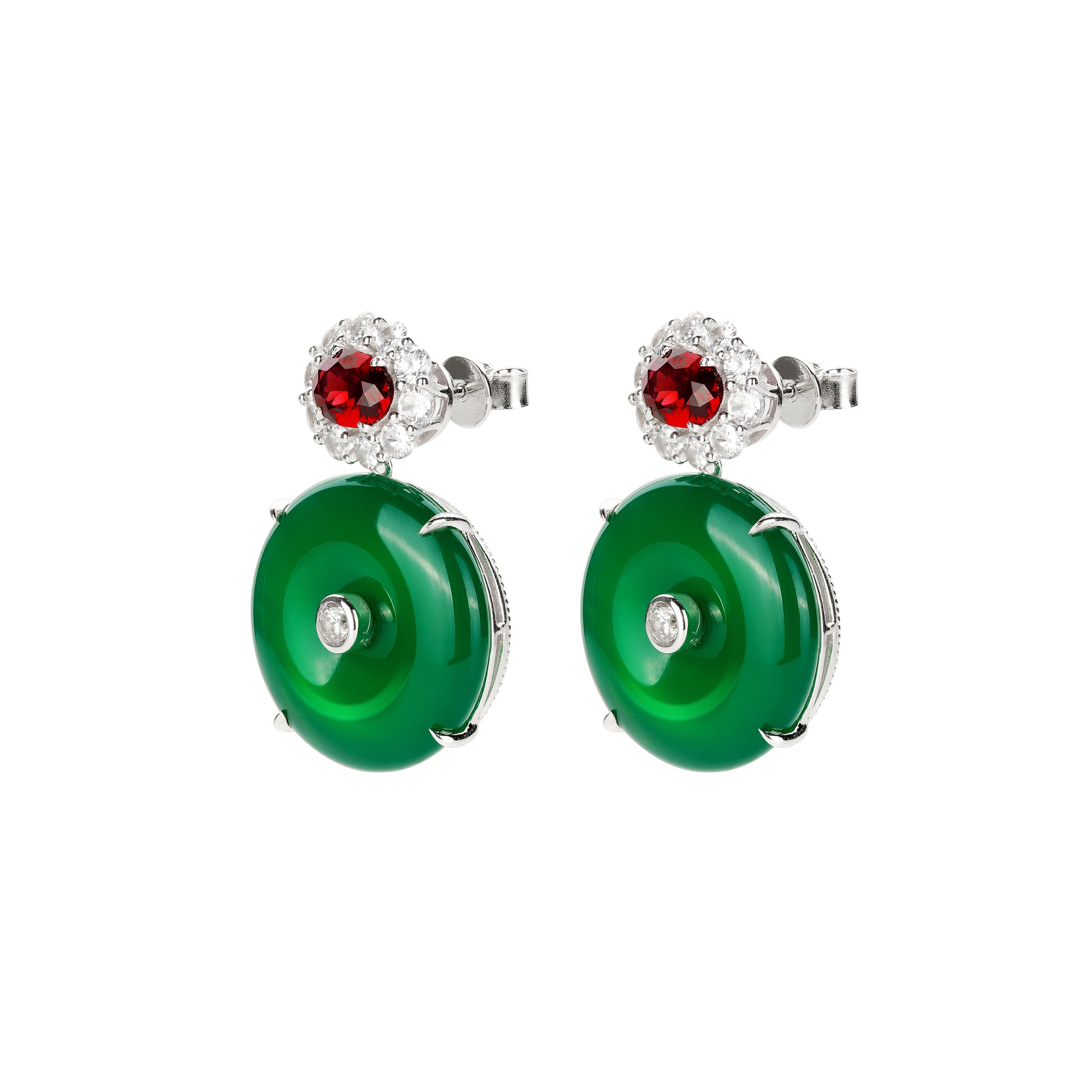 Discover the harmonious blend of spiritual symbolism and artistic craftsmanship in our stunning Green chalcedony "Chrismas Donut" earrings, meticulously handcrafted from Chinese chalcedony.