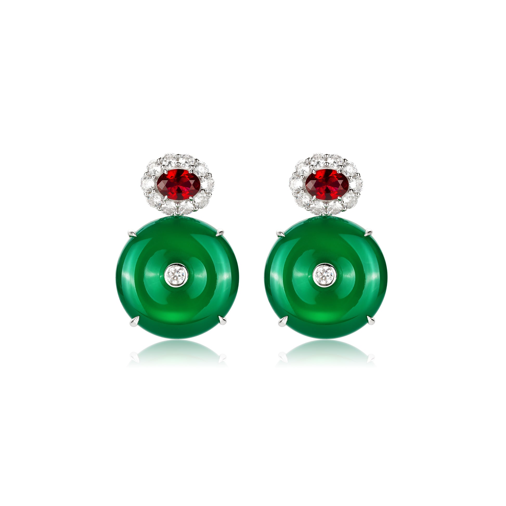 Green chalcedony and Eco-friendly artificial diamonds "Chrismas Donut" earrings