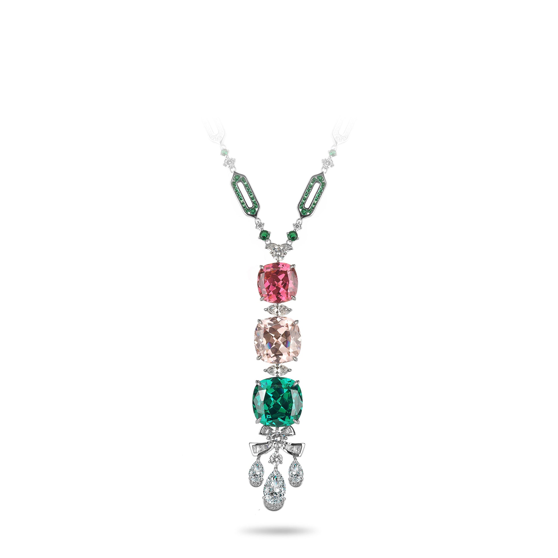 High Jewelry collection:Multi-color Luxury “Spring Hope” Evening Y necklace .