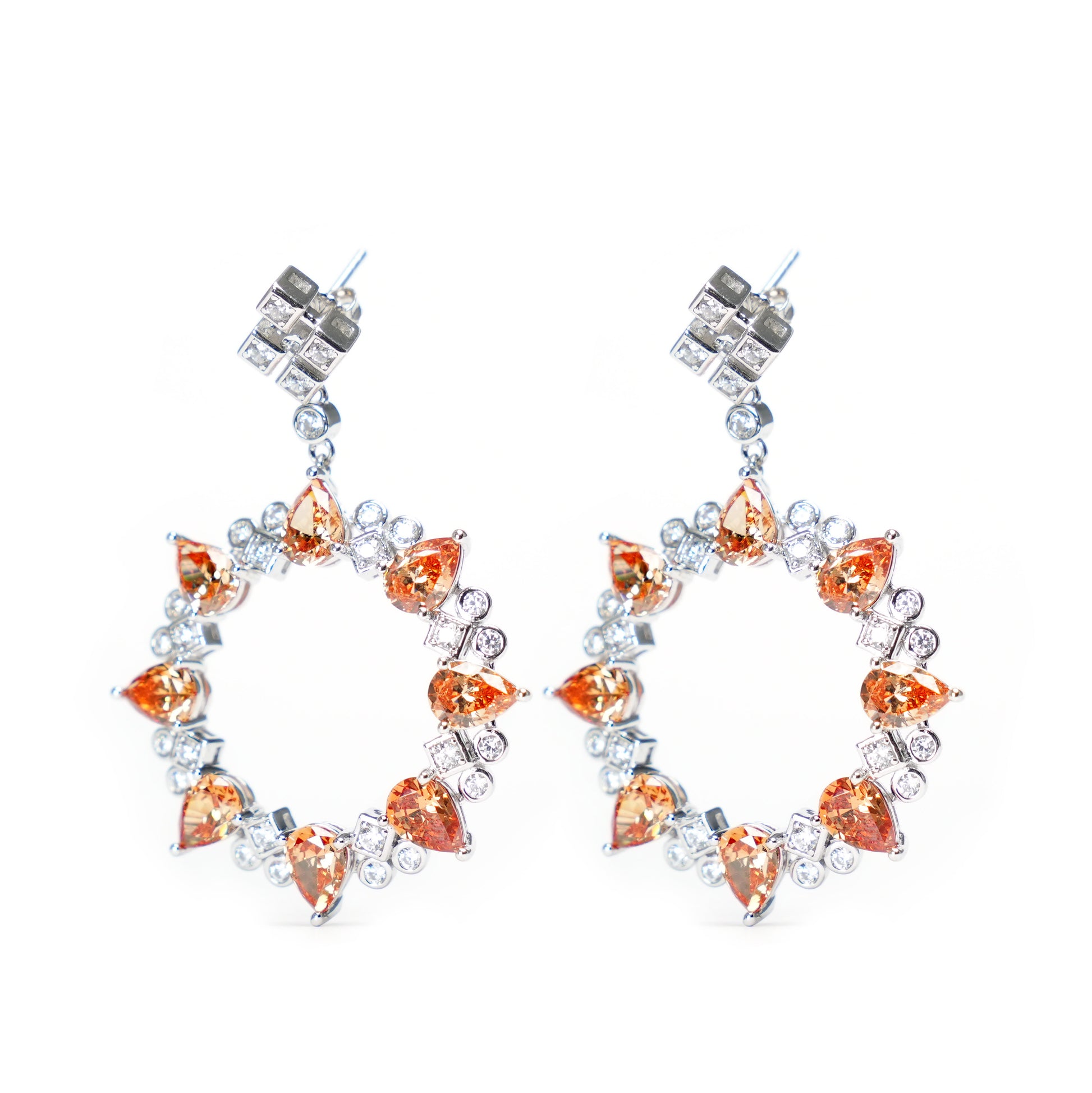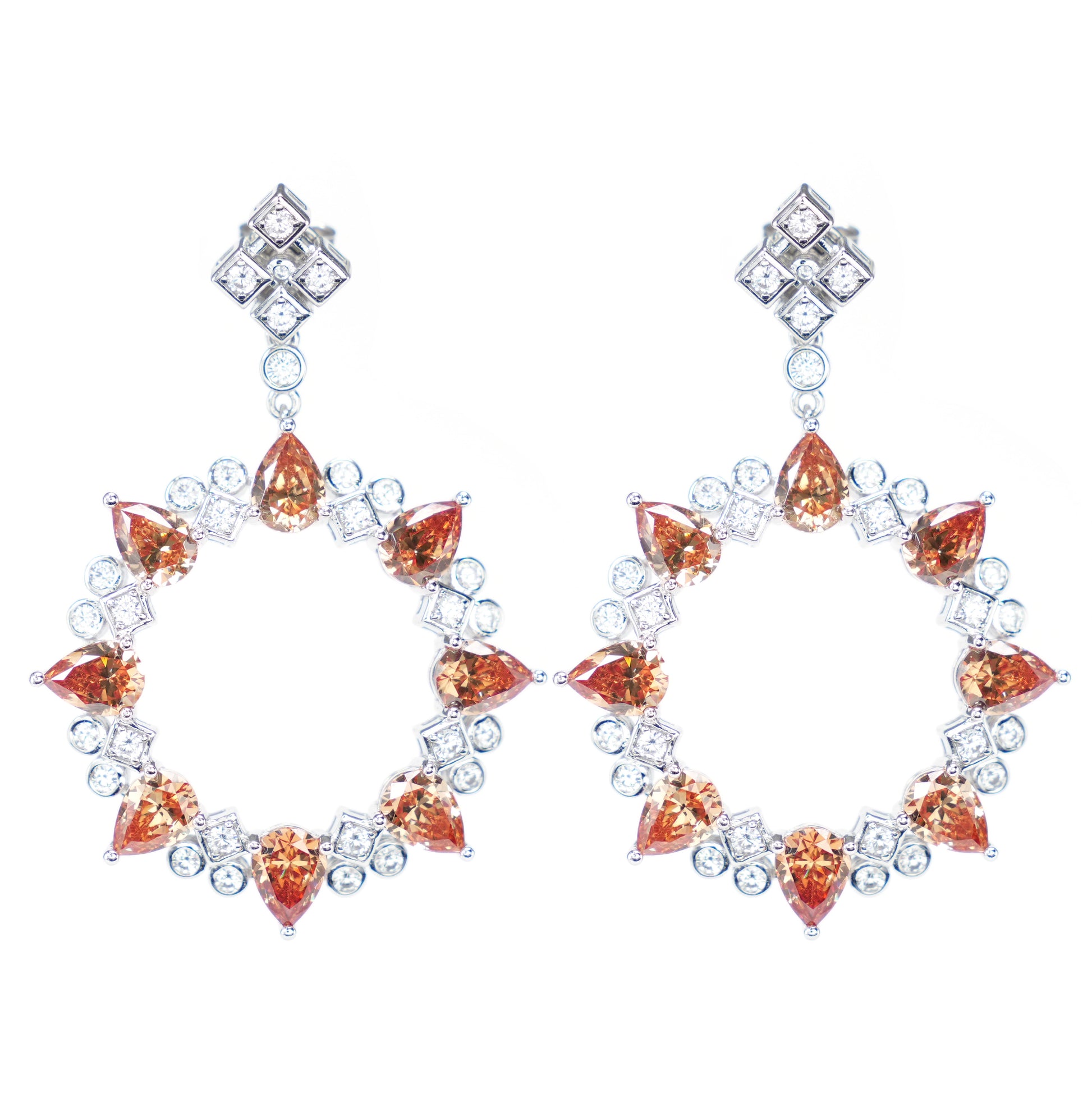 Micro-setting Fanta color Lab created stones The early morning earrings, sterling silver.