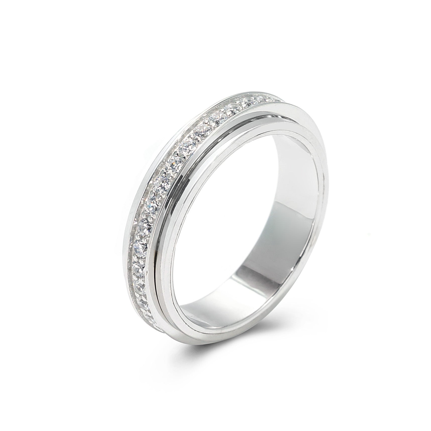 Wedding collection: Fidget Spinner full stone ring, sterling silver