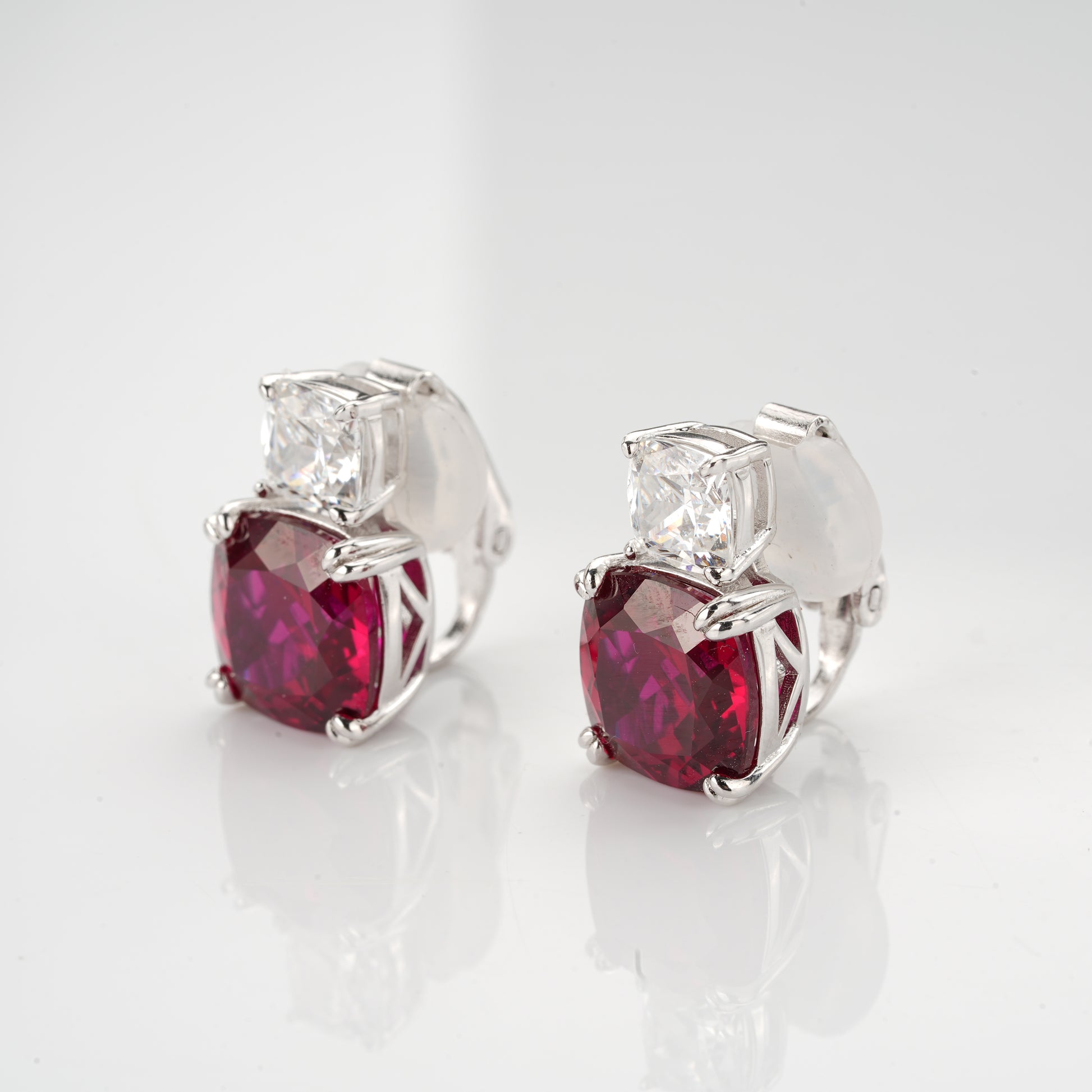 Eco-friendly Ruby and clear diamond color Lab created stones, sterling silver.