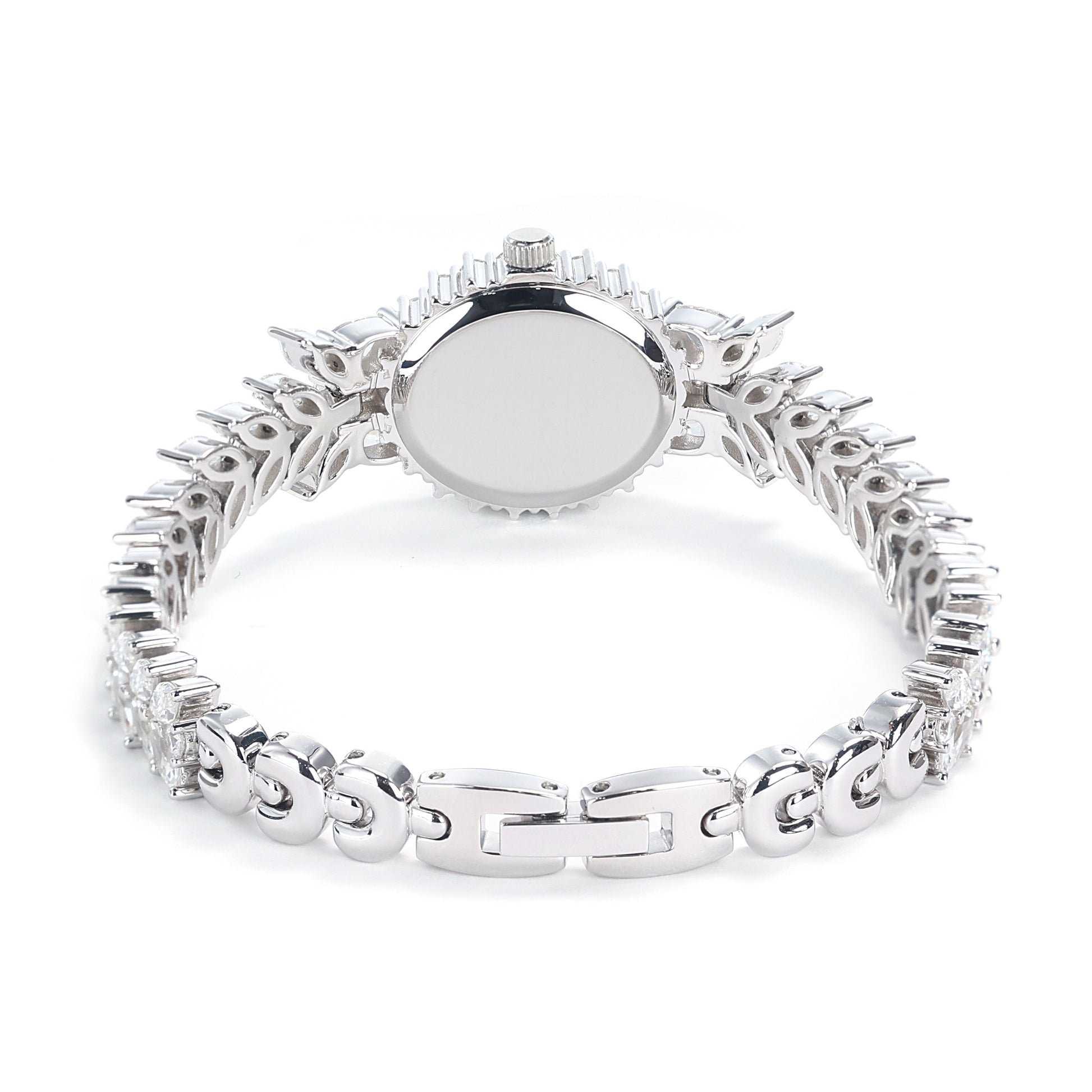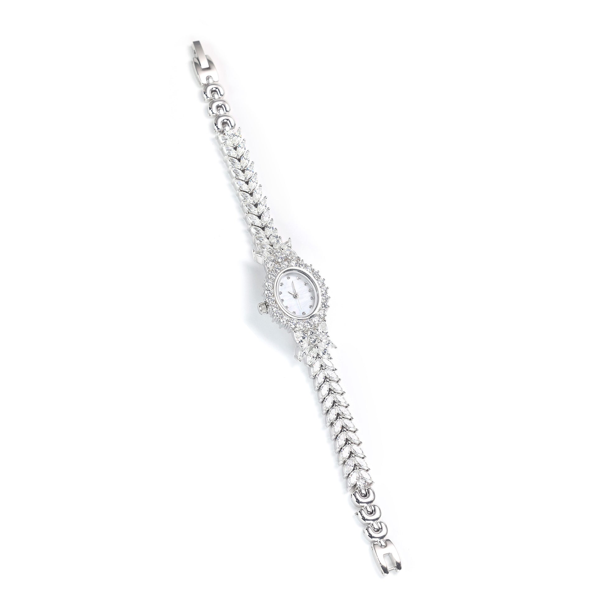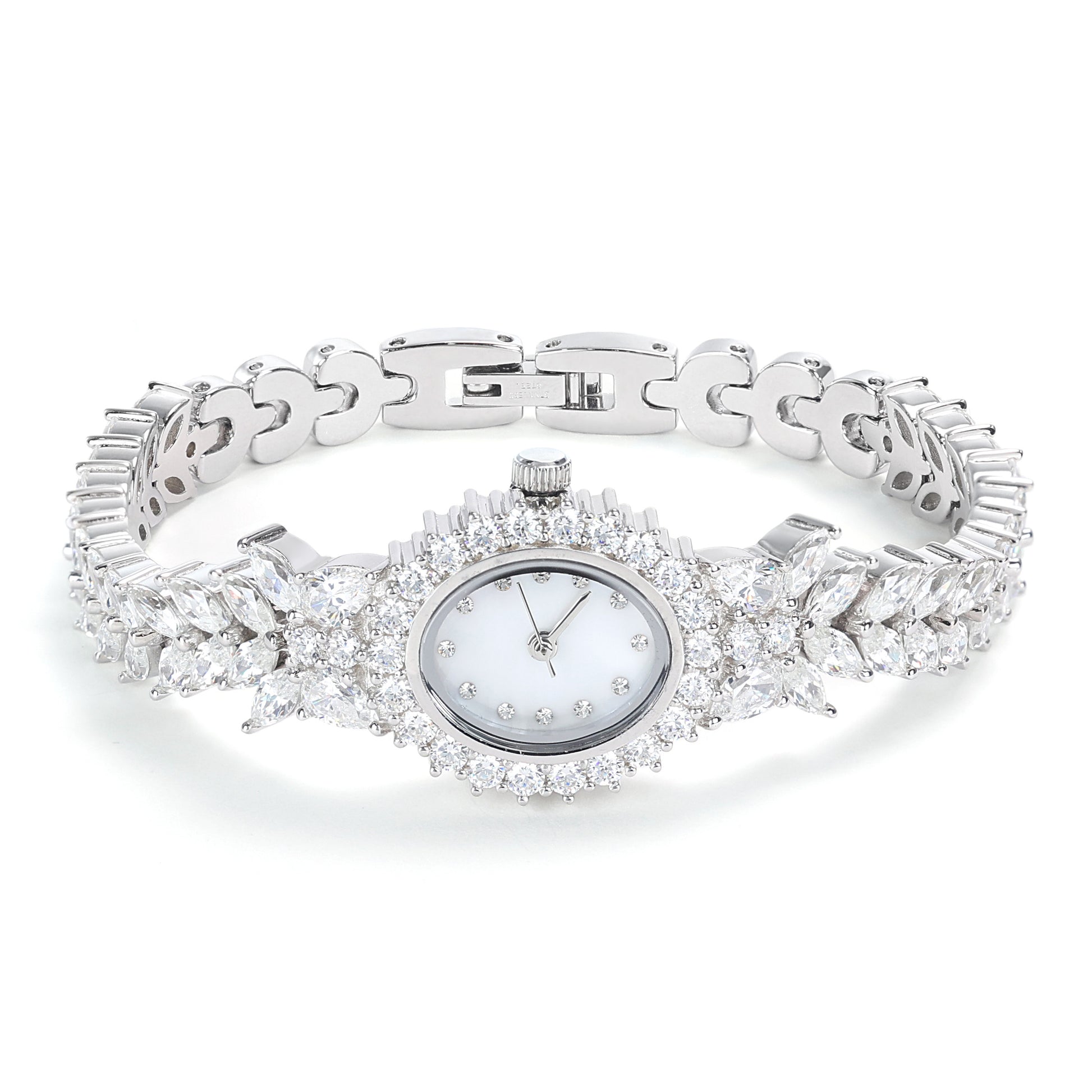 Micro-setting White shell and Lab created stones The Egg watch bracelet, sterling silver & steel.