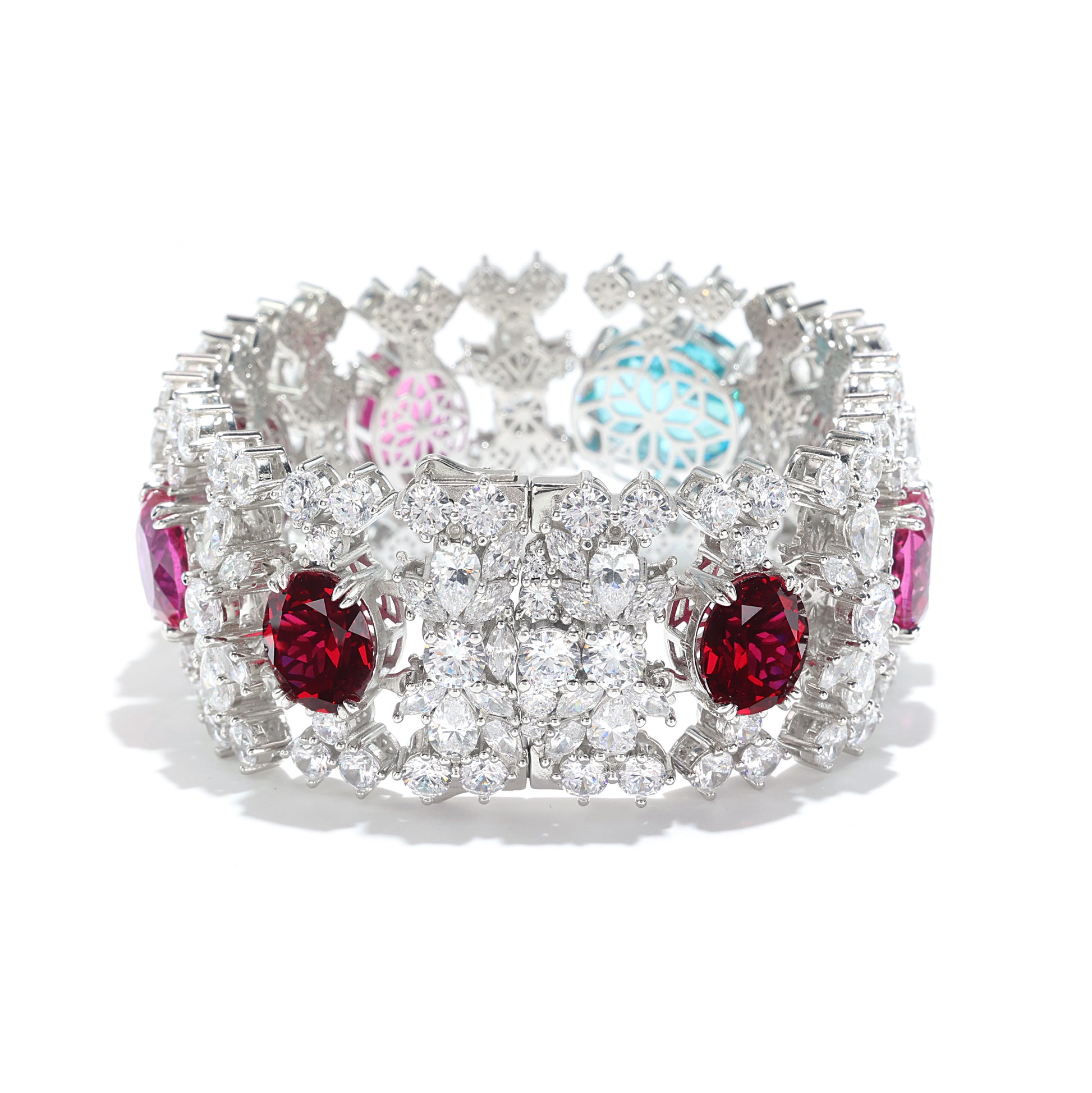 Micro-setting Colorful Lab created stones Monet garden bracelet, sterling silver
