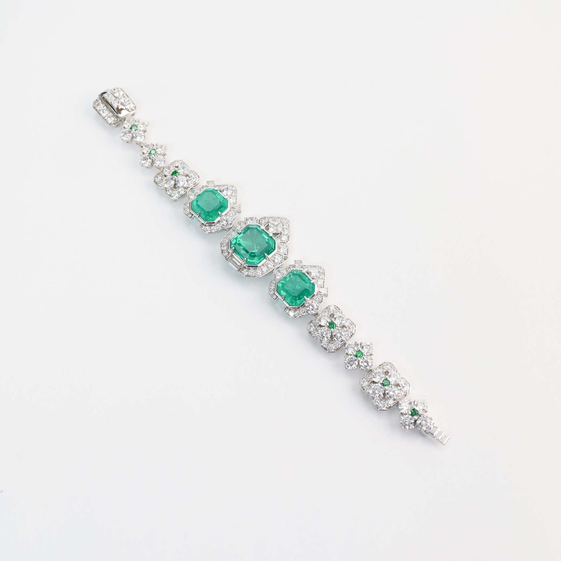 Bracelet fantaisie entièrement clouté couleur Emeraude micro-serti