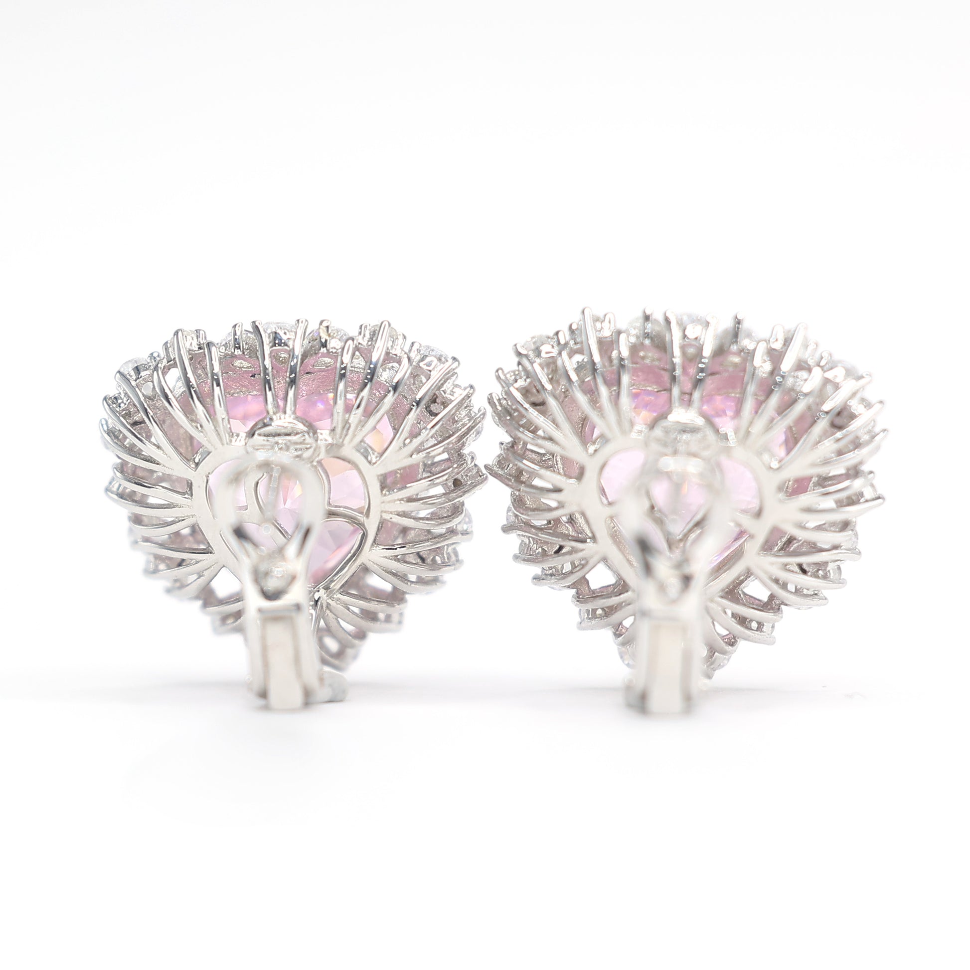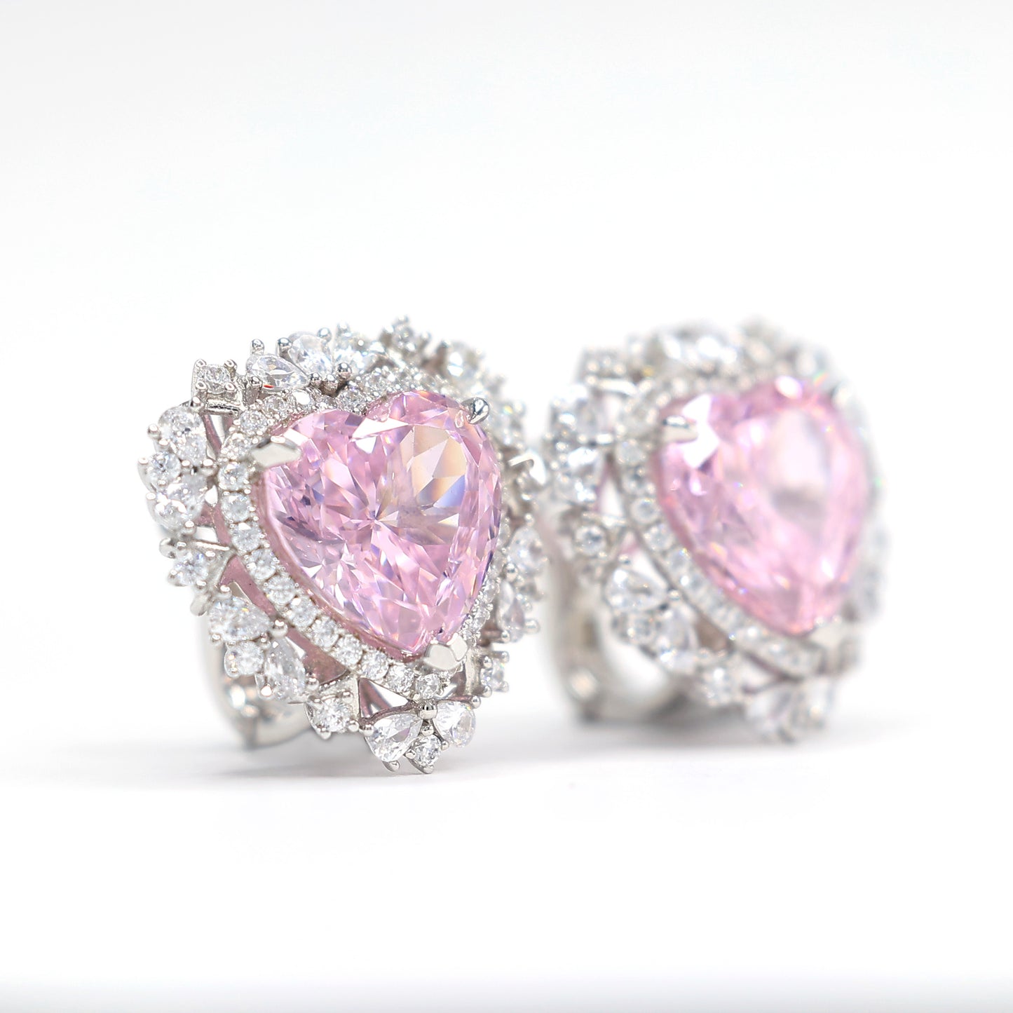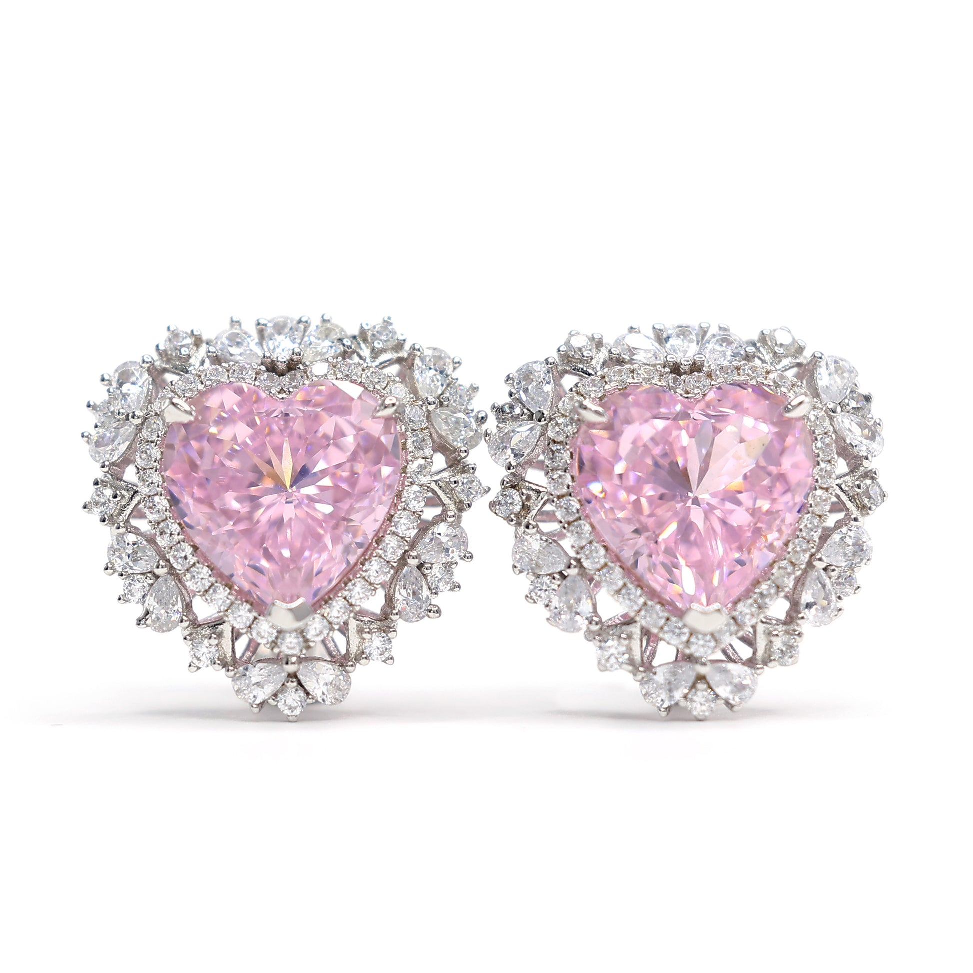Boucles d'oreilles en forme de cœur fantaisie avec pierres créées par le laboratoire, couleur diamant rose micro-serti, argent sterling