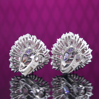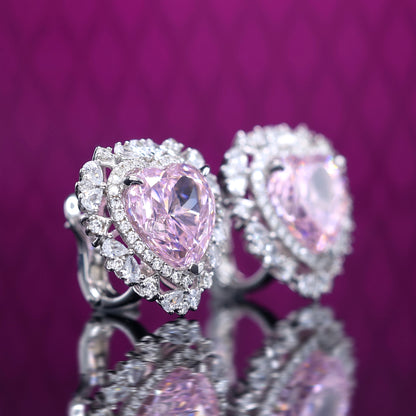 Boucles d'oreilles coeur fantaisie entièrement cloutées en argent sterling avec pierres créées par le laboratoire de couleur diamant rose micro-serti.