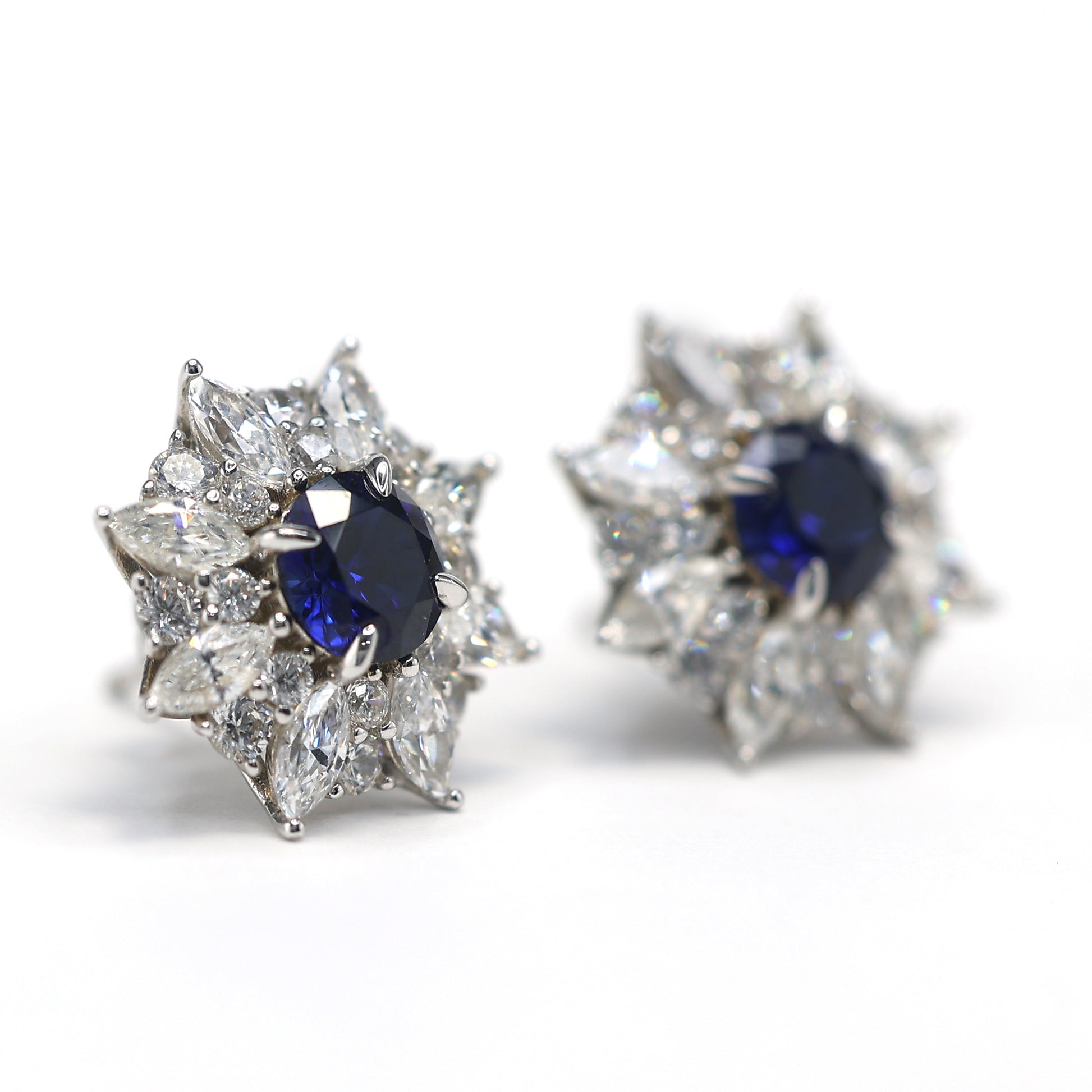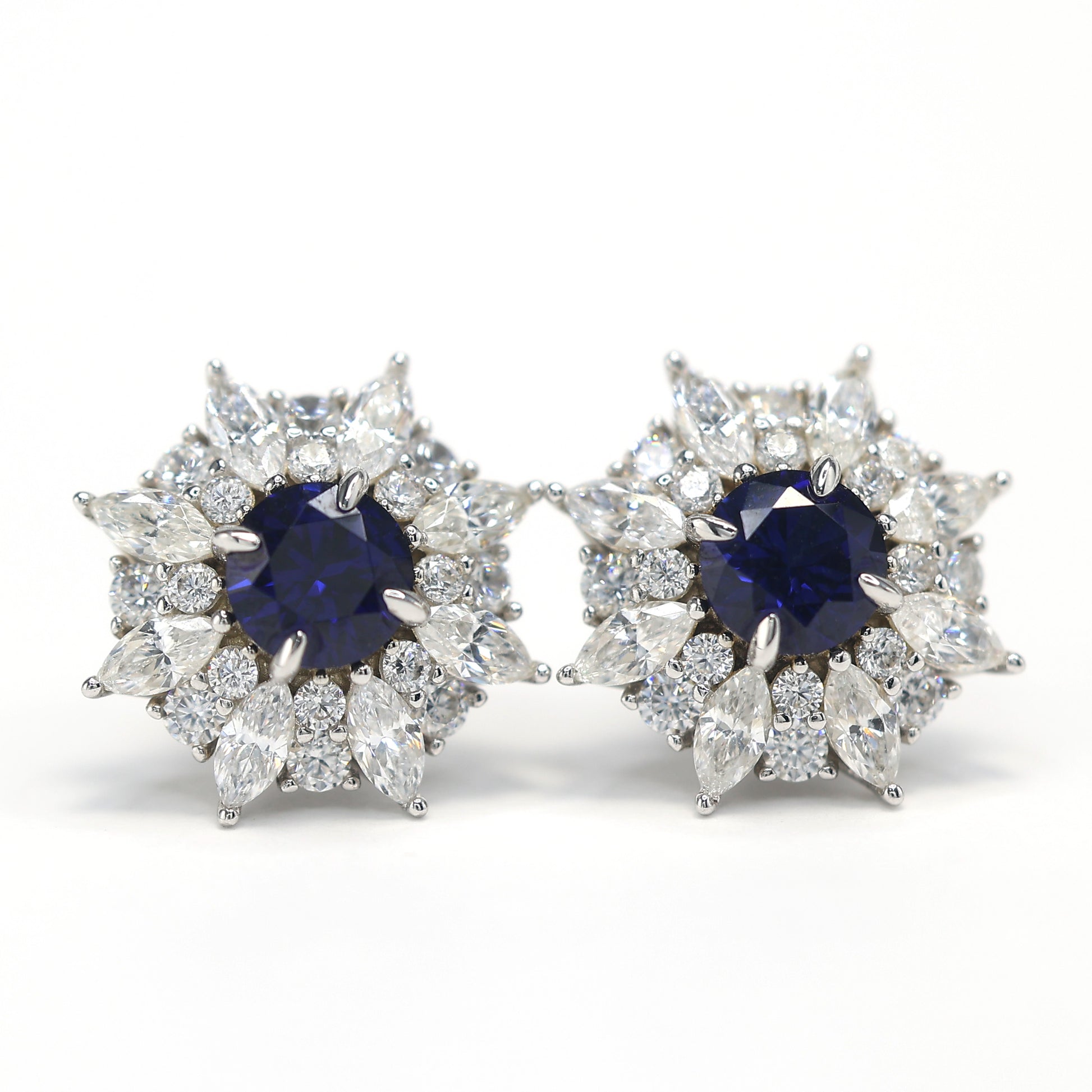Pierres créées en laboratoire de couleur saphir micro-serti Boucles d'oreilles huit étoiles, argent sterling.