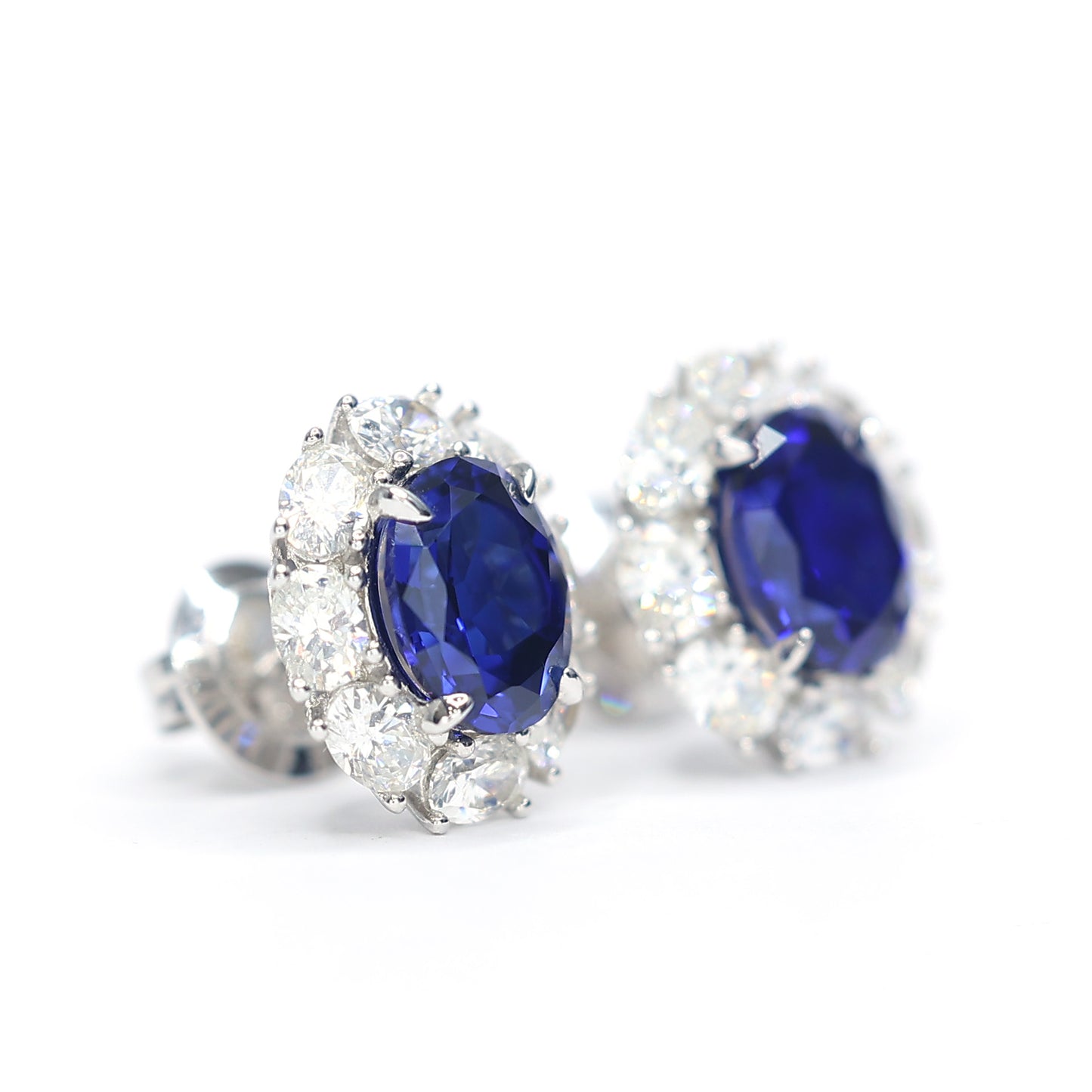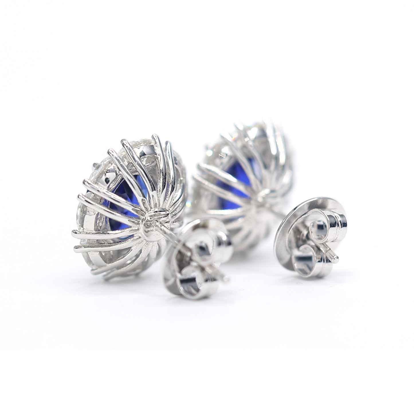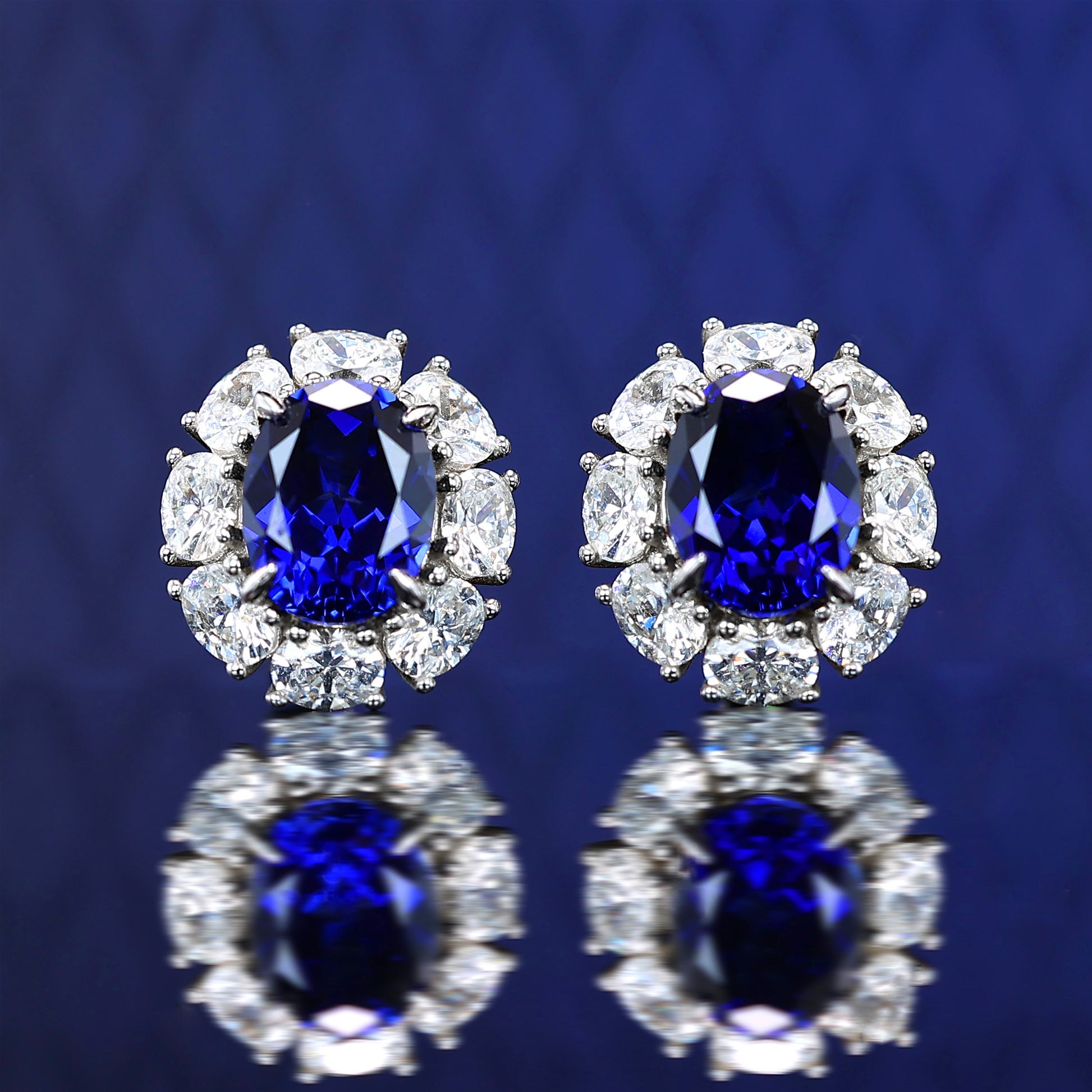 Boucles d'oreilles diana de forme ovale en pierres créées par laboratoire de couleur saphir micro-serti, argent sterling.