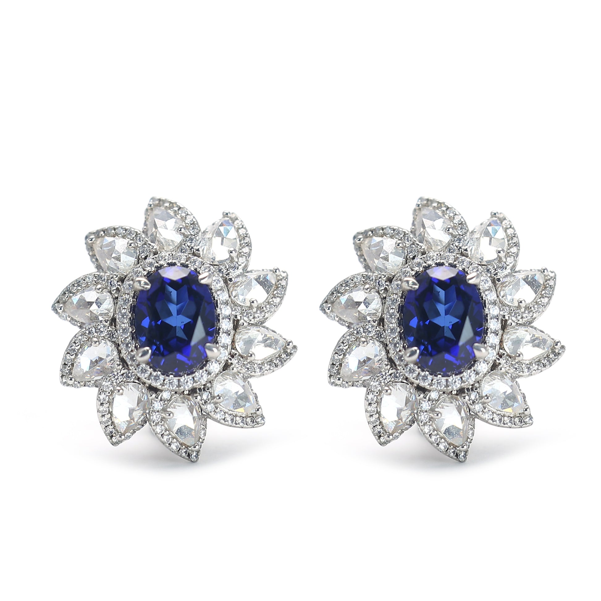 Couleur Saphir micro-serti Boucles d'oreilles Apollo en pierres de taille de laboratoire, argent sterling.