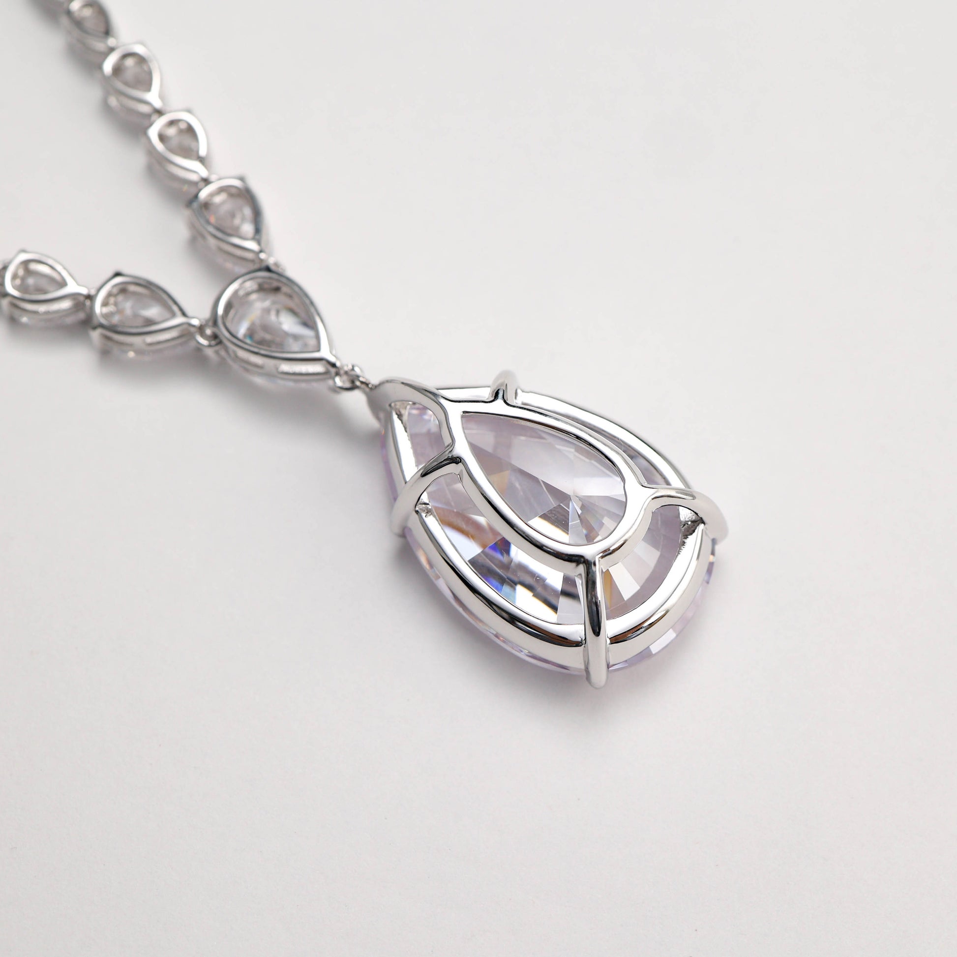 Micro-set Clear diamond color Lab a créé des pierres détaillées collier goutte d'eau classique, argent sterling
