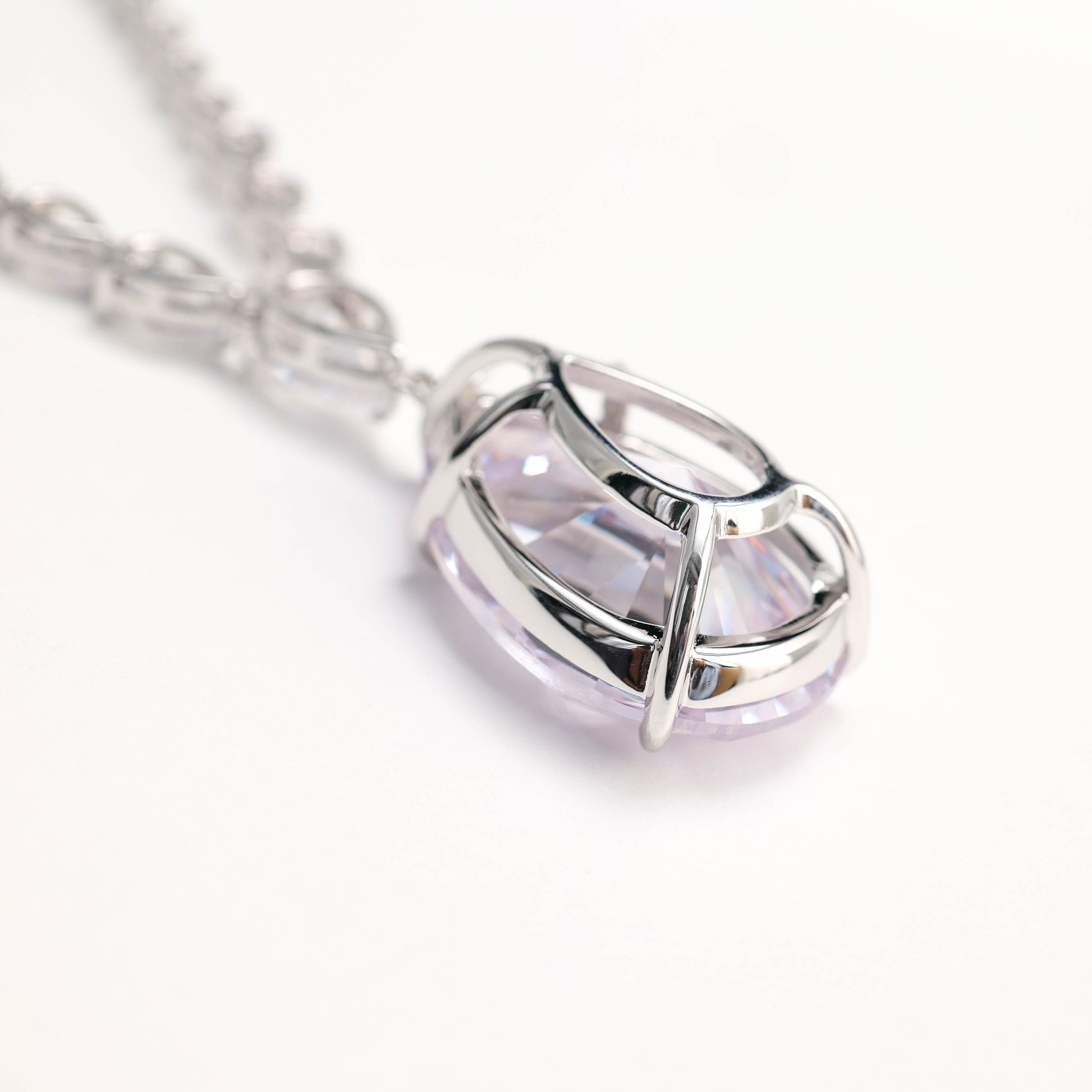 Collier en forme de goutte d'eau classique avec pierres créées par le laboratoire, couleur diamant clair, micro-serti, argent sterling.
