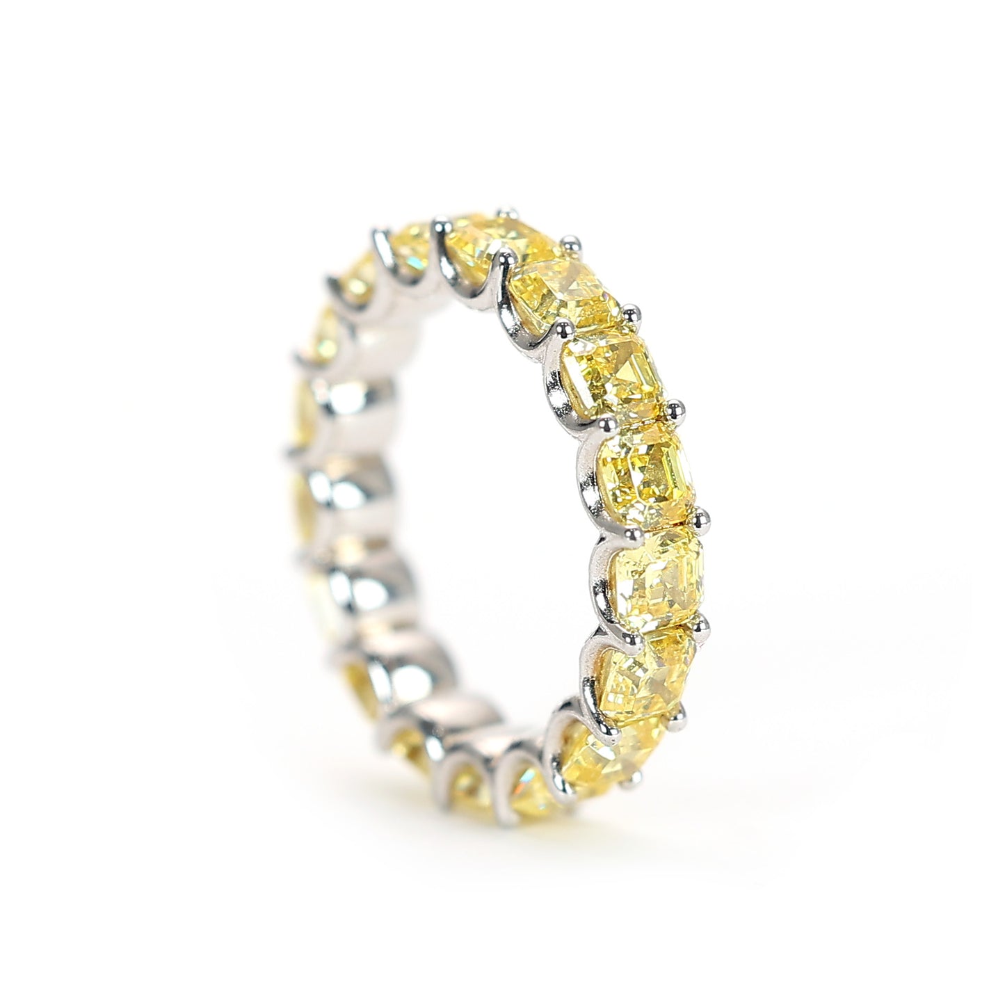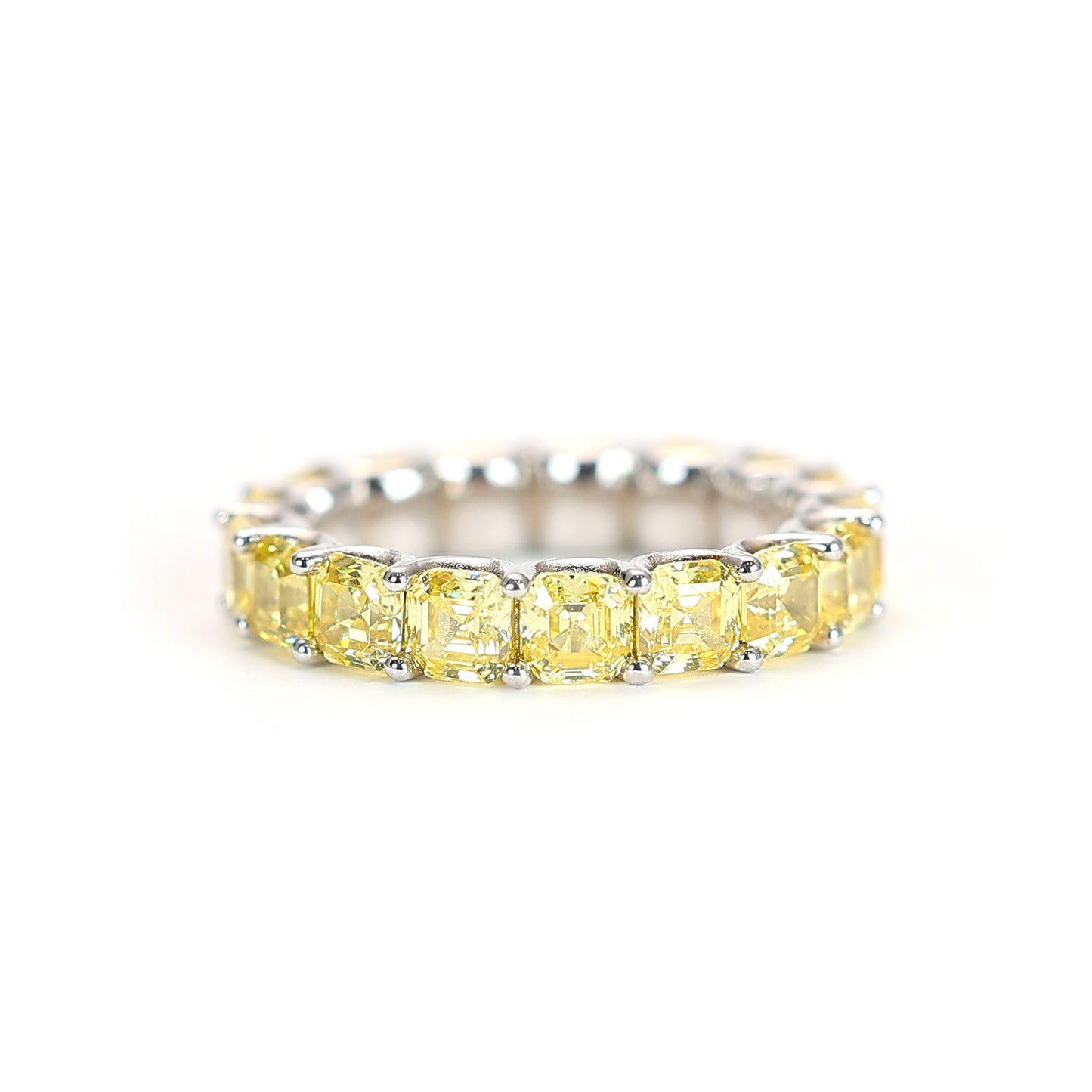 Seulement 1 bague en diamants jaunes micro-sertis de couleur Lab créé pierres taillées asscher, argent sterling