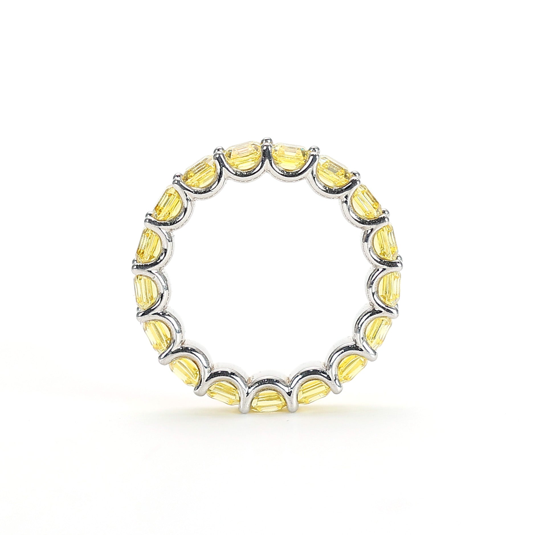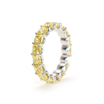 Bague en argent 925/1000 avec diamants jaunes de couleur micro-sertis, pierres créées par le laboratoire.
