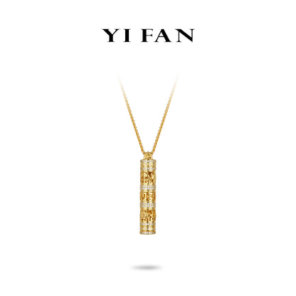 Introducing Elsevier & Yifan jewelry's latest high-end jewelry creation: the "Golden Carved Hollow Pendant Necklace with Hidden Guanyin Statue."