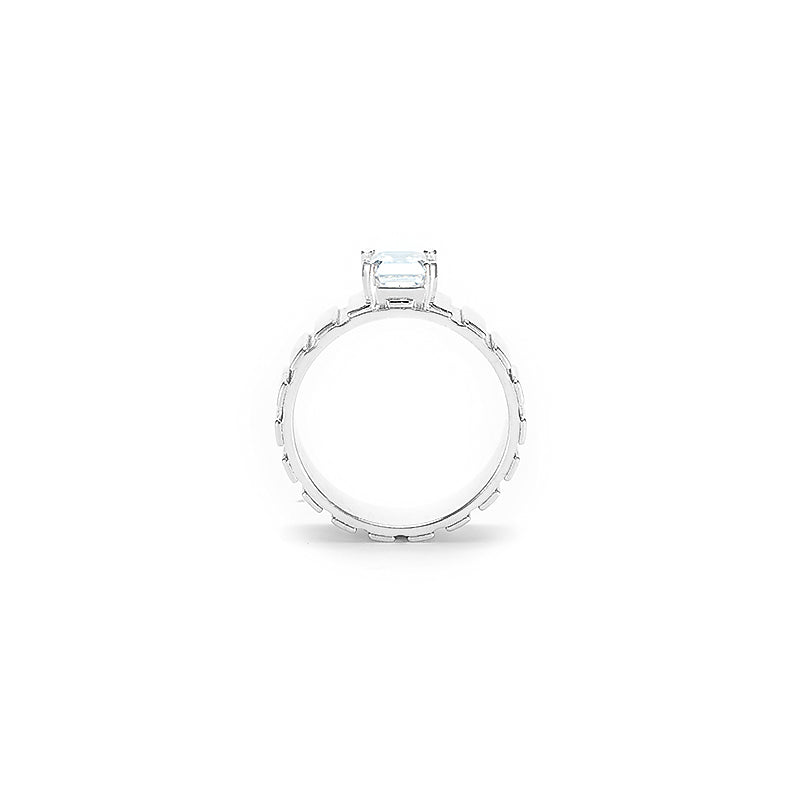 Micro-setting G color Lab created stones asscher-cut band ring, sterling silver.