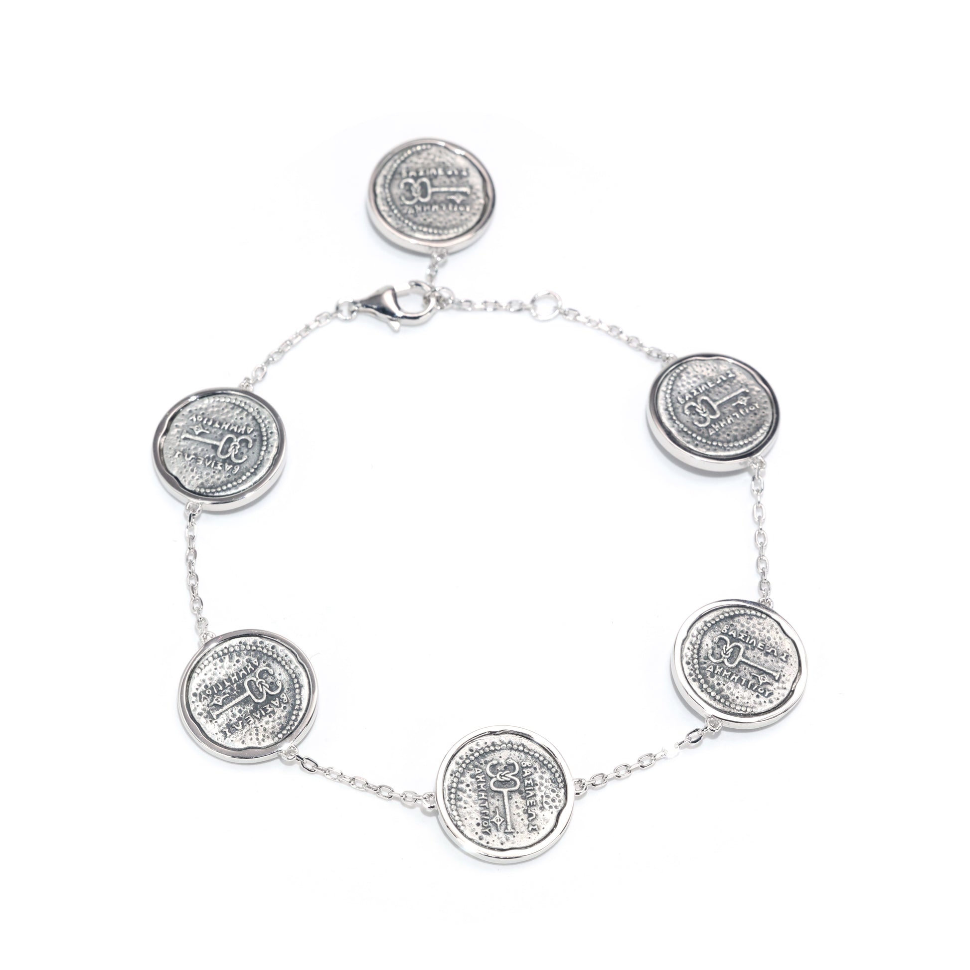 Ancient coin imitation the elephant bracelet, sterling silver.
