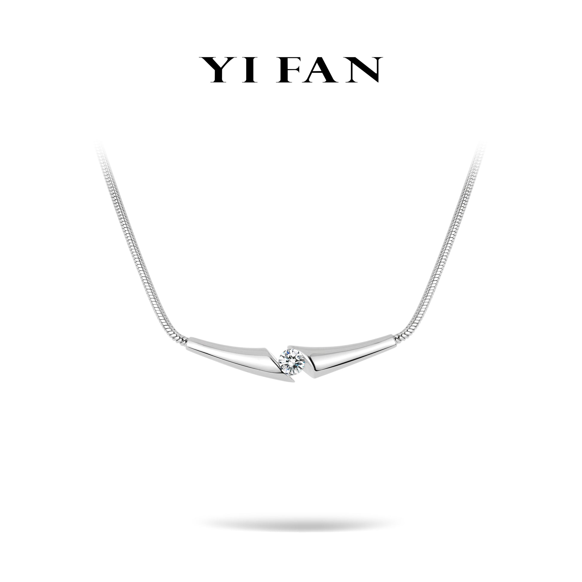 Crafted with 925 silver, the necklace features sleek, asymmetric streamline motifs that converge at the center, cradling a single synthetic diamond. The polished metal surfaces reflect light subtly, while the diamond’s brilliance adds a focal point of elegance. The delicate chain complements the bold design, ensuring comfort for daily wear or special occasions. This piece merges modern minimalism with refined sparkle—ideal for those who appreciate understated luxury. Every detail, from the smooth metal contours to the secure diamond setting, embodies our commitment to contemporary craftsmanship, making it a versatile accessory that elevates any look with a touch of avant-garde charm.