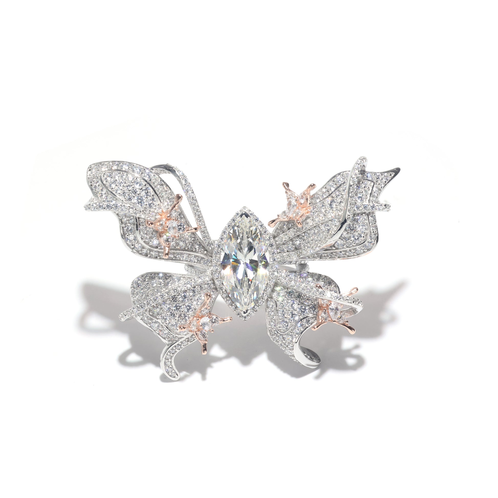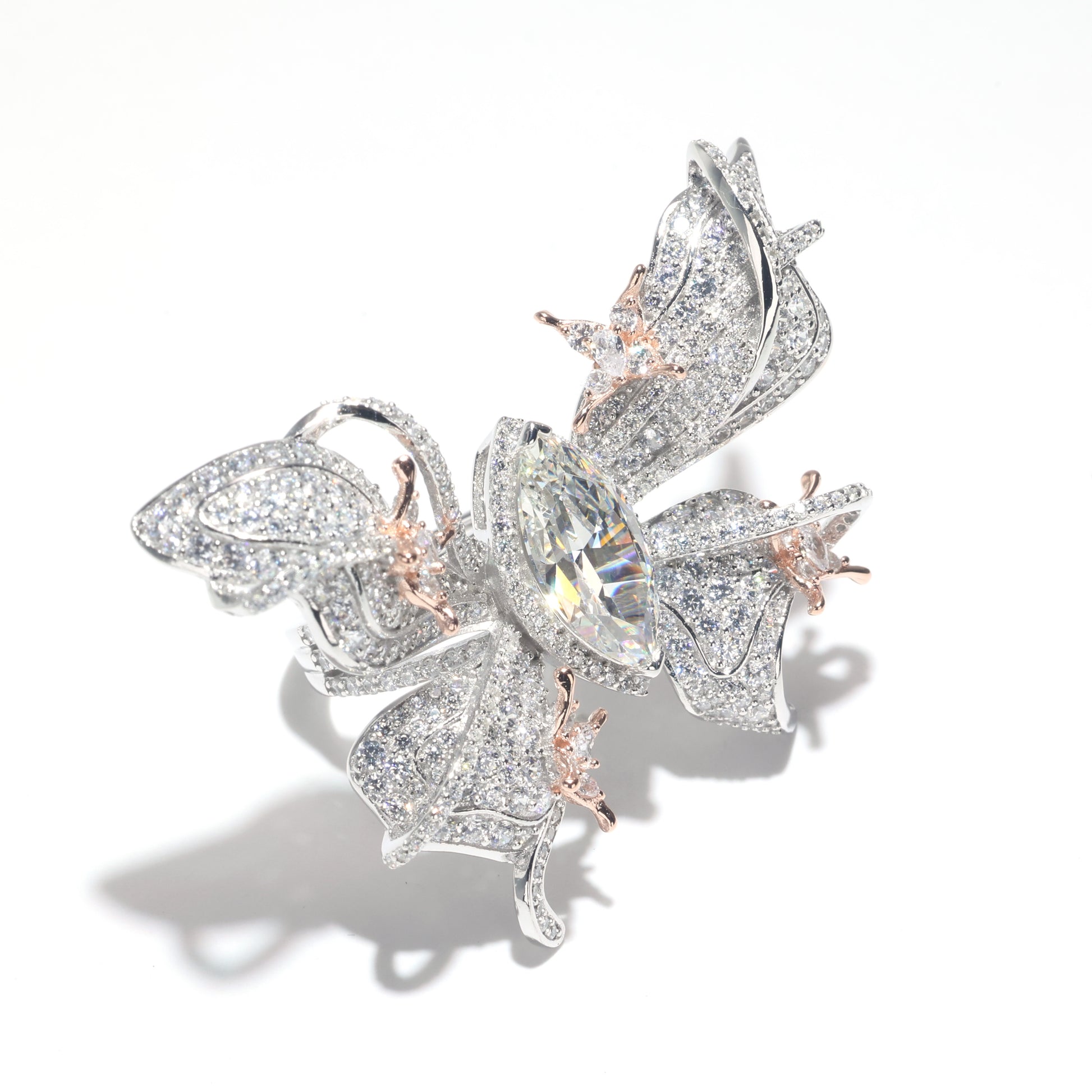 Reservation design Micro-setting Clear diamond color CZ Marquise butterfly ring, sterling silver