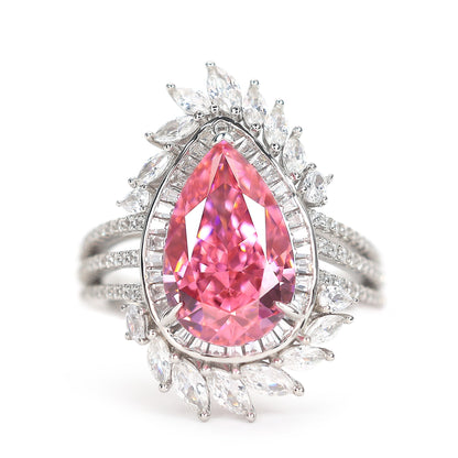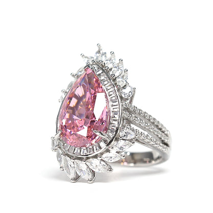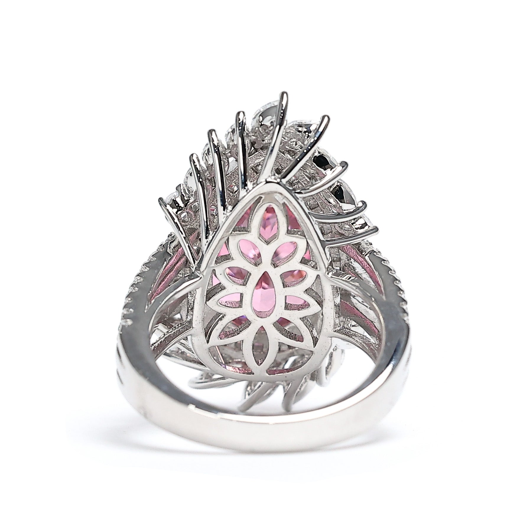Offre spéciale Micro-serti Diamant rose Couleur Pierres créées par le laboratoire Bague goutte d'eau fantaisie, argent sterling