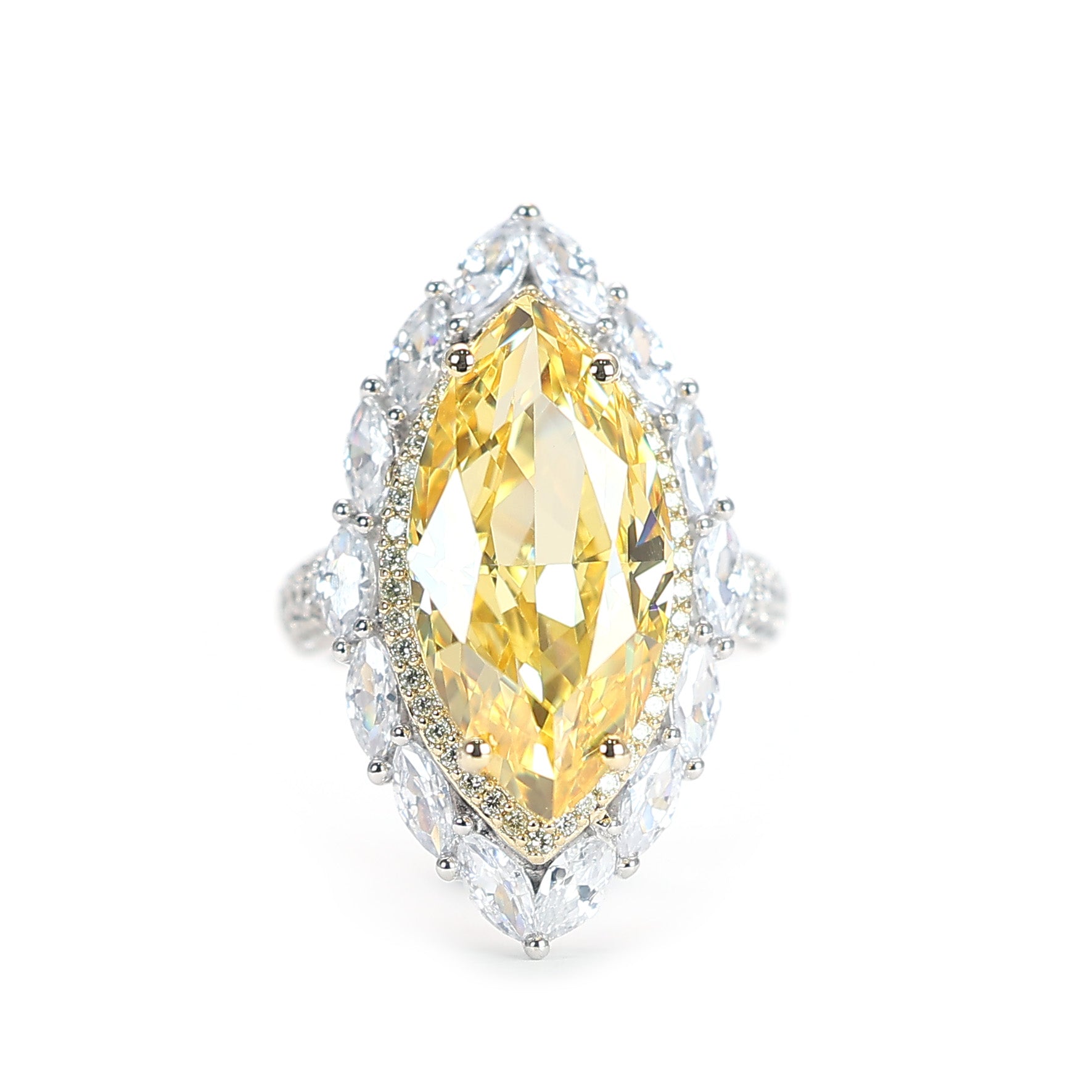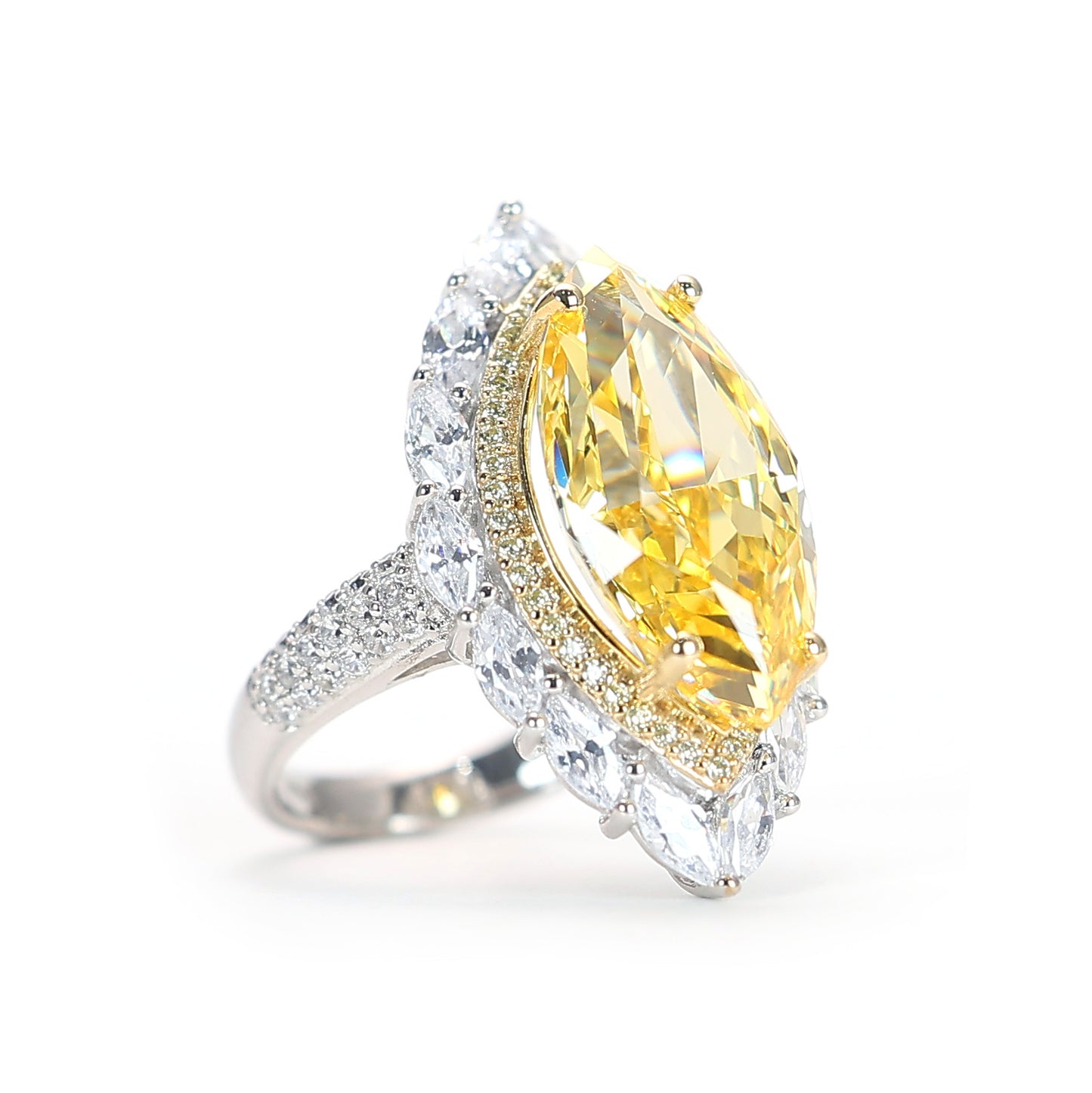 Offre spéciale Bague fantaisie micro-sertie diamant couleur jaune forme marquise pierres de laboratoire, argent 925/1000e.